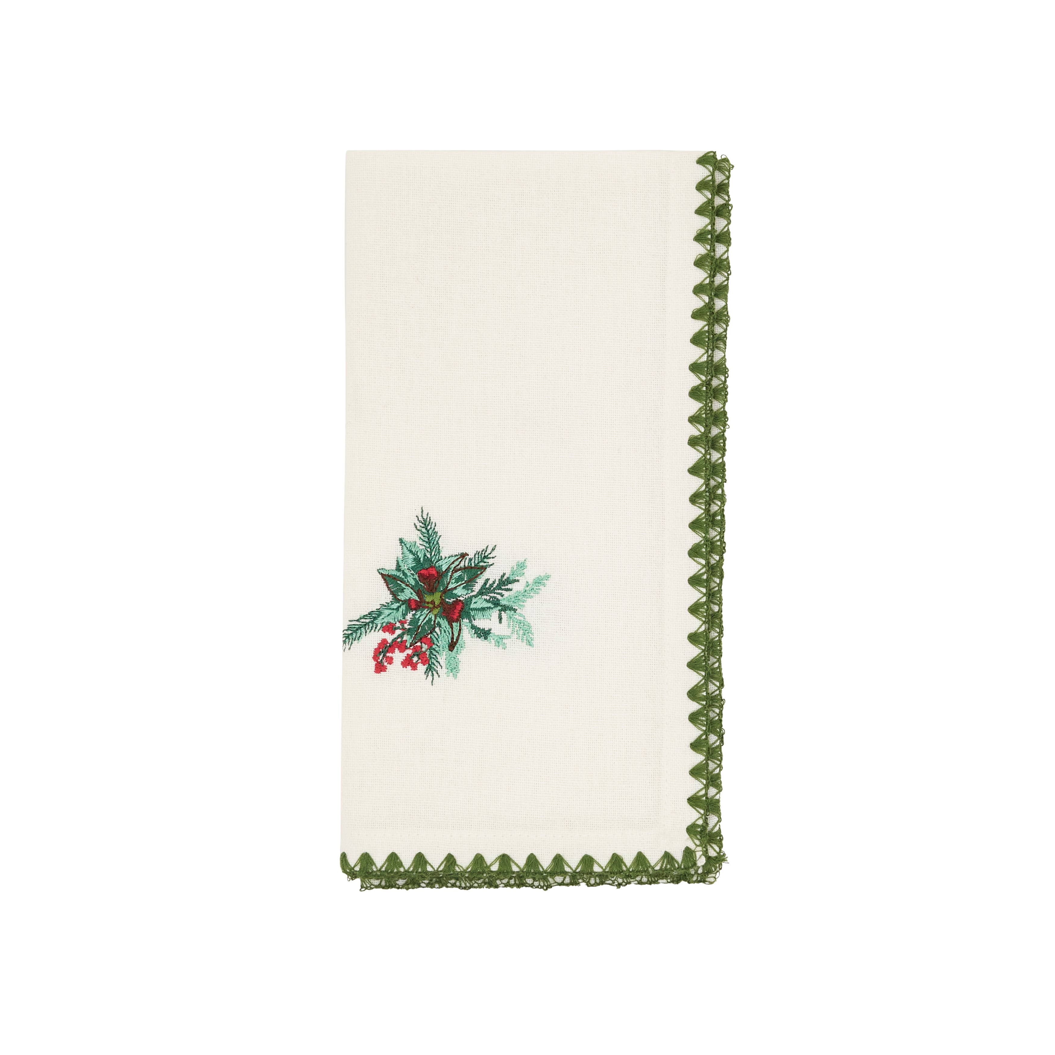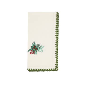 Nos serviettes en lin 100 % européen sont un parfait mélange d'élégance et de beauté. Chaque serviette est brodée sur un coin d'un arbre décoré d'une bordure dorée. Lavable en machine, à sécher à plat pour un toucher doux et agréable. Repasser si vous souhaitez un rendu plus formel. Motif de broderie par Sonia Showalter Embroidery. Dimensions : 56 cm x 56 cm (22" x 22").