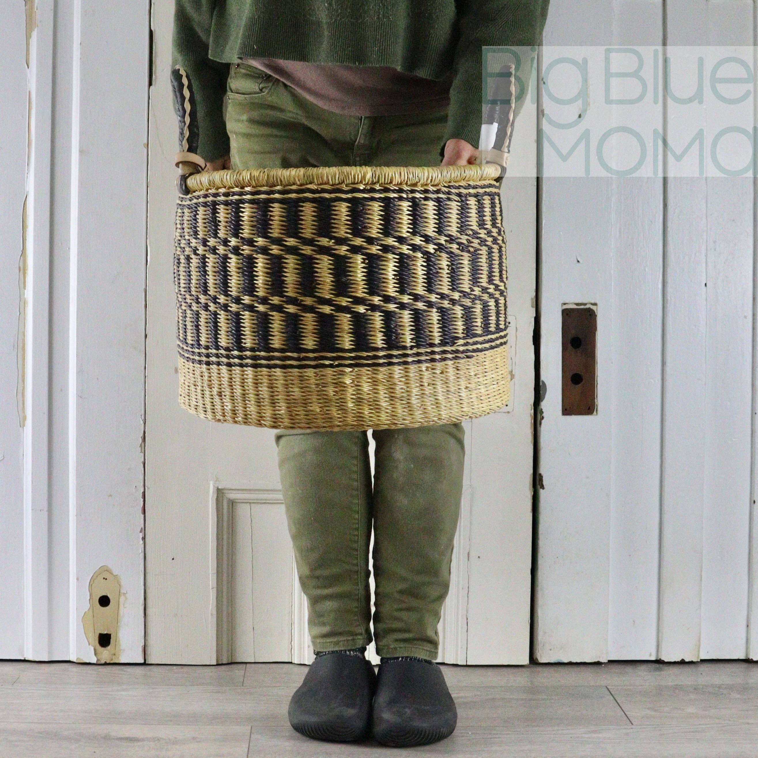 KUNDI : Panier à linge tressé en couleur naturelle et noire | Panier à bûches | Panier de rangement avec poignées | Panier à couvertures | Panier à linge