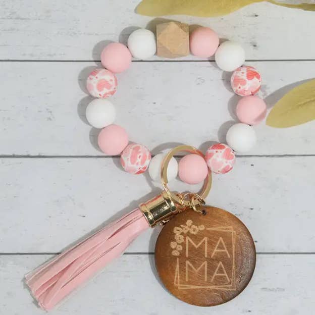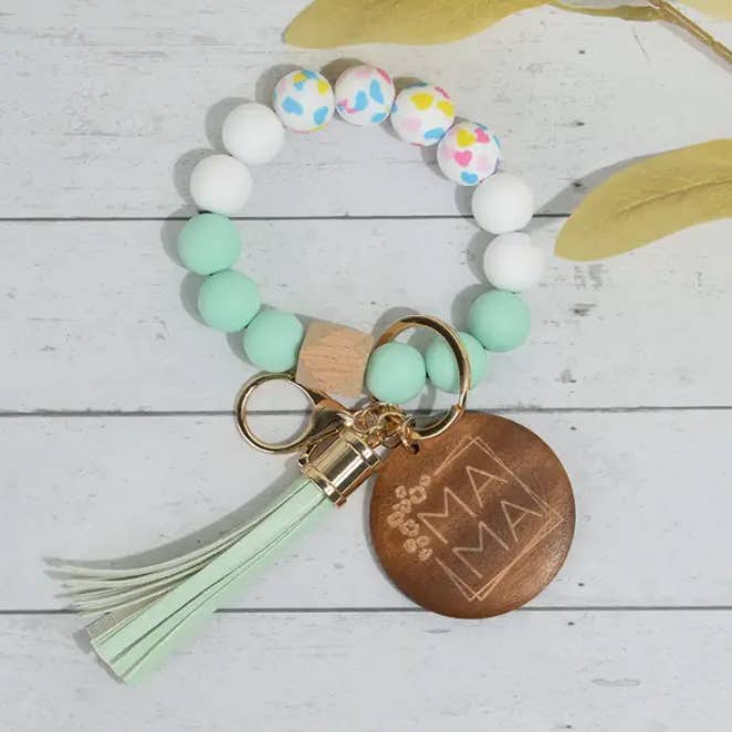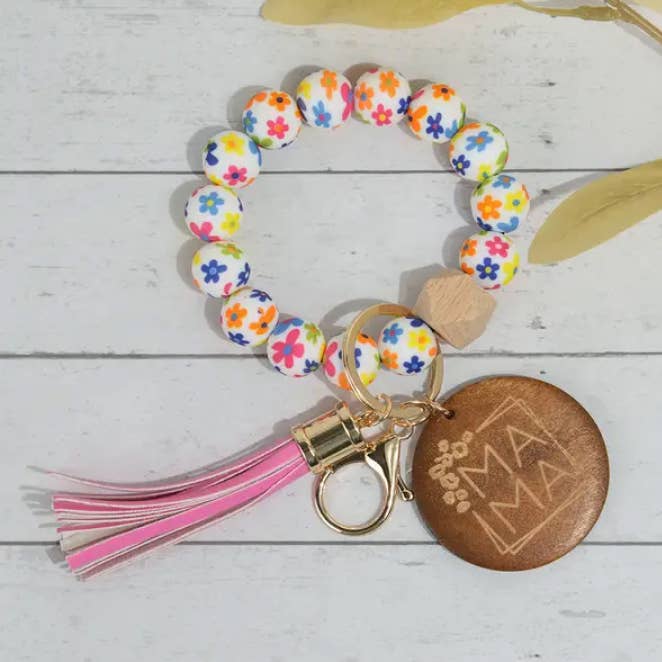 Porte-clés avec perles en silicone et pompon en PU en vente B2B