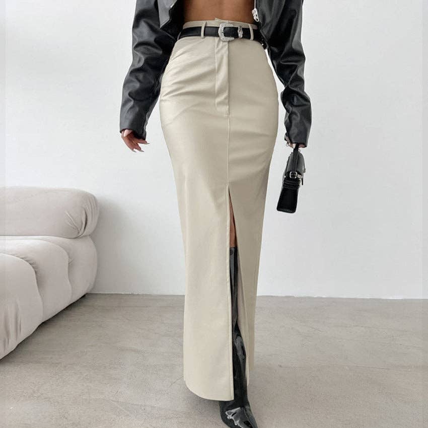 Jupe longue en cuir doublée polaire de couleur unie pour femmes