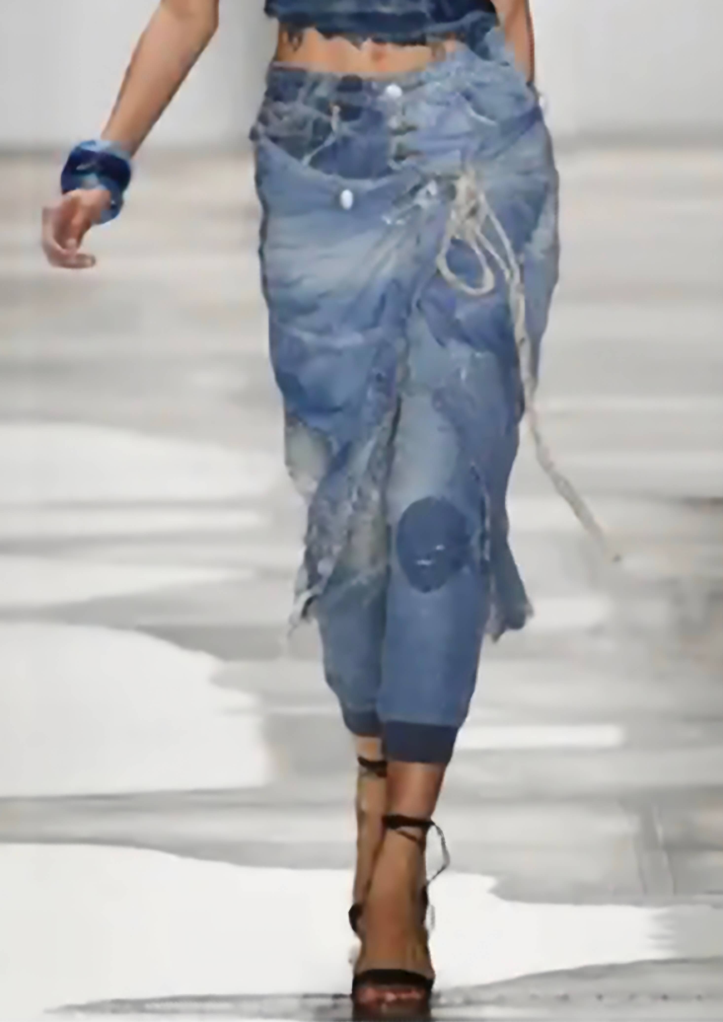 Doit être une taille 5 pour que la grande jupe en similicuir aille. Tu as enlevé le jean... mais vue côte à côte. Le jean arrive à mes genoux... wow.