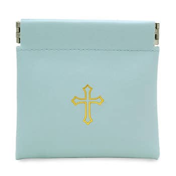 Pochette de chapelet en vinyle 3,75" x 3,75" avec fermeture à pression. Disponible en bleu, rouge et blanc.