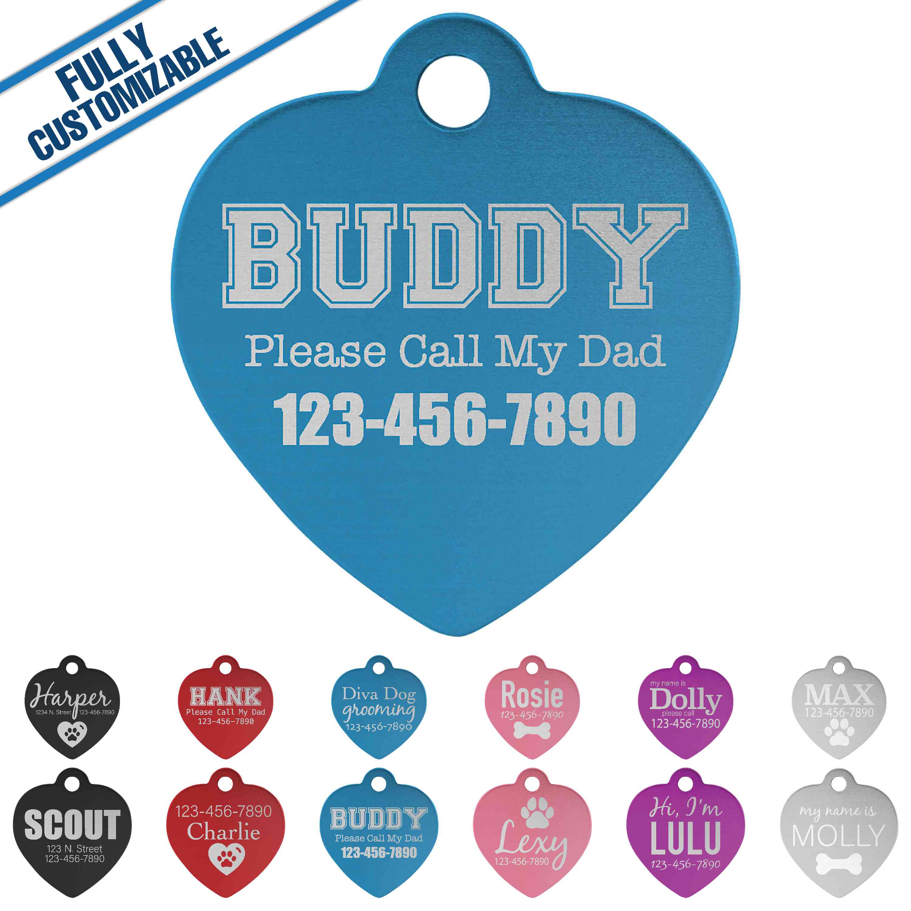 Le design est entièrement personnalisable. Veuillez fournir vos coordonnées (nom, téléphone et e-mail). Veuillez expliquer ce que vous souhaitez pour votre design (y compris le texte). Si vous avez des images utilisables à fournir, veuillez noter que vous les enverrez par e-mail séparément. Veuillez les envoyer à orders@giftworksplus.com. Veuillez noter que vous recevrez des épreuves de conception qui devront être approuvées avant la production de la commande. Idéal pour les étiquettes d'identification, les colliers d'amitié ou les alertes médicales, ces étiquettes en aluminium à double face font d'excellents cadeaux. PAS de frais de configuration ! PAS de frais de conception ! Personnalisation gratuite ! Minimum de 1 pièce Gravé Les étiquettes ont un trou pré-découpé, parfait pour une chaîne à billes ou un porte-clés (chaîne à billes et porte-clés non inclus) Le trou pré-découpé est rond de 0,125"