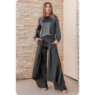 Pantalon large plissé à taille haute et à blocs de couleur - Design à blocs de couleur avec un contraste saisissant de noir et de moutarde - Devant plissé ajoutant de la texture et allongeant la silhouette - Coupe large offrant un mouvement élégant et confortable - Fermeture éclair latérale pour un ajustement sans couture - Parfait pour des looks de bureau chics ou des sorties en soirée stylées - Le mannequin mesure 1,77 m et porte une taille petite