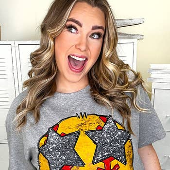 Du DTG sur un t-shirt gris athlétique *En raison de la pénurie de stocks, les chemises seront soit Bella Canvas, Next Level, soit Cotton Heritage* Des t-shirts pour jeunes sont également disponibles et porteront sur un modèle Bella ou Next Level. Les chemises ont une coupe unisexe.