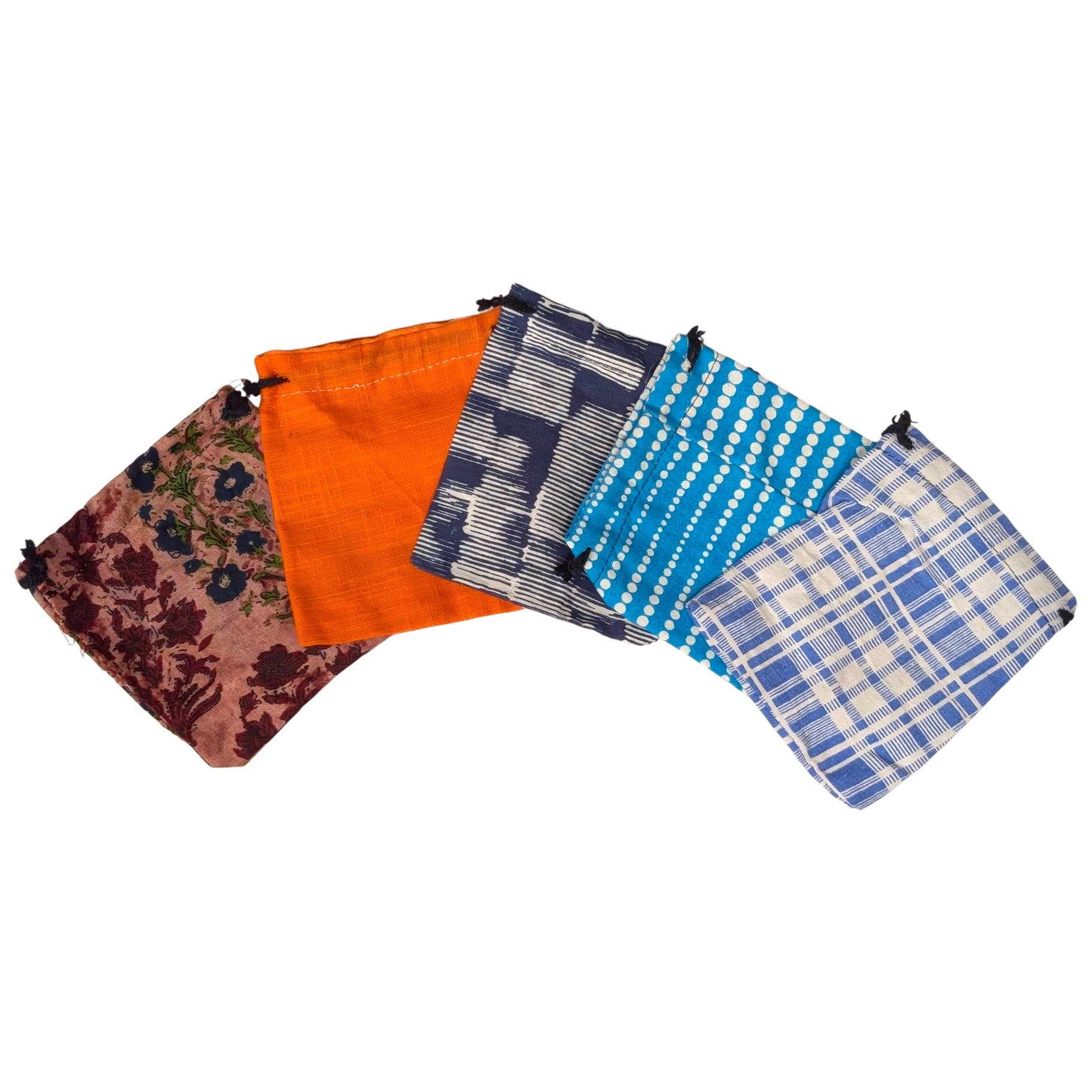 Ces sacs en coton colorés et amusants à cordon sont parfaits comme emballage cadeau, sacs à friandises, pour bibelots, etc. Ils mesurent environ 7" x 5" à plat, avec une hauteur de 6" du bas au cordon. Ils sont disponibles en 4 motifs colorés amusants. La couleur or sur les motifs a un aspect métallique. Vendues par lots de 50 assortis.
