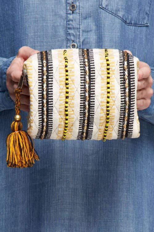 Rangez le maquillage, les articles de toilette, les fournitures d'artisanat et bien plus encore dans le grand sac cosmétique multifonctionnel Venus. La doublure est facile à nettoyer. Des lignes et des textures exubérantes sont disposées dans une symétrie inattendue avec ce design de Danica Studio, tandis que l'ocre riche et le bordeaux s'ébattent avec le rose doux et le vert, imitant la dualité de la beauté féroce de la nature. Dimensions : L11,75 x H7 pouces Matériau : Corps : 100 % coton ; Doublure : 100 % coton ciré végan Instructions d'entretien : Nettoyage localisé uniquement.