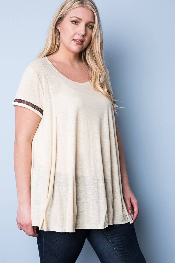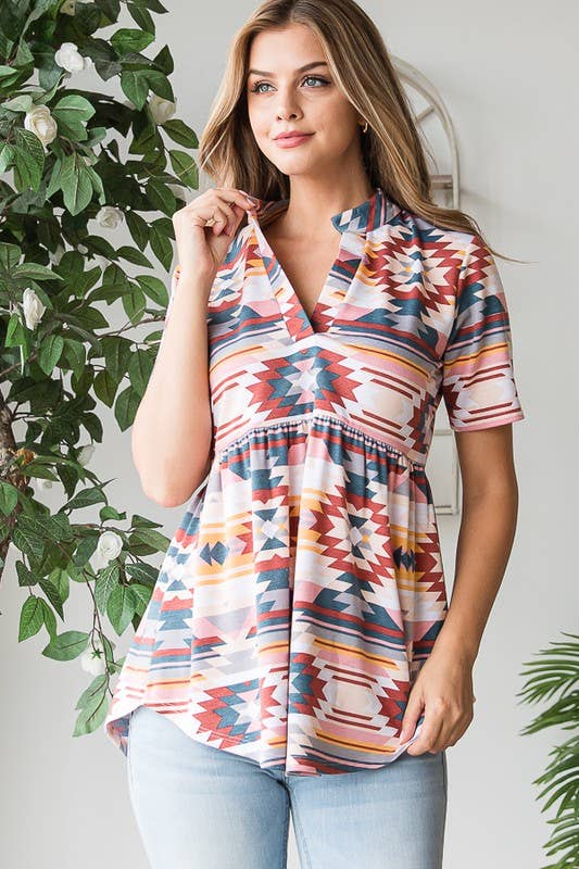 *TAILLE PLUS* T-shirt à manches courtes à col en V imprimé géo aztèque avec poche avant ample. Informations sur le modèle/image Hauteur : 5'8 Taille US : 2 Poitrine : 33 po Tour de taille : 25 po ** Le mannequin porte une taille petite** *** TOUS les accessoires ne sont pas inclus***