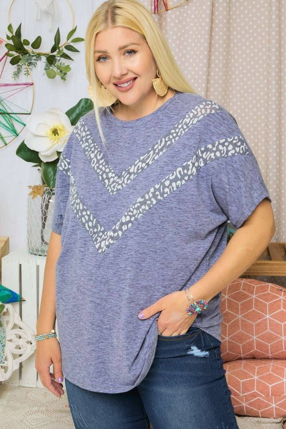 LMT2232PL-L-T-shirt à motif géométrique taille plus grande en vente B2B