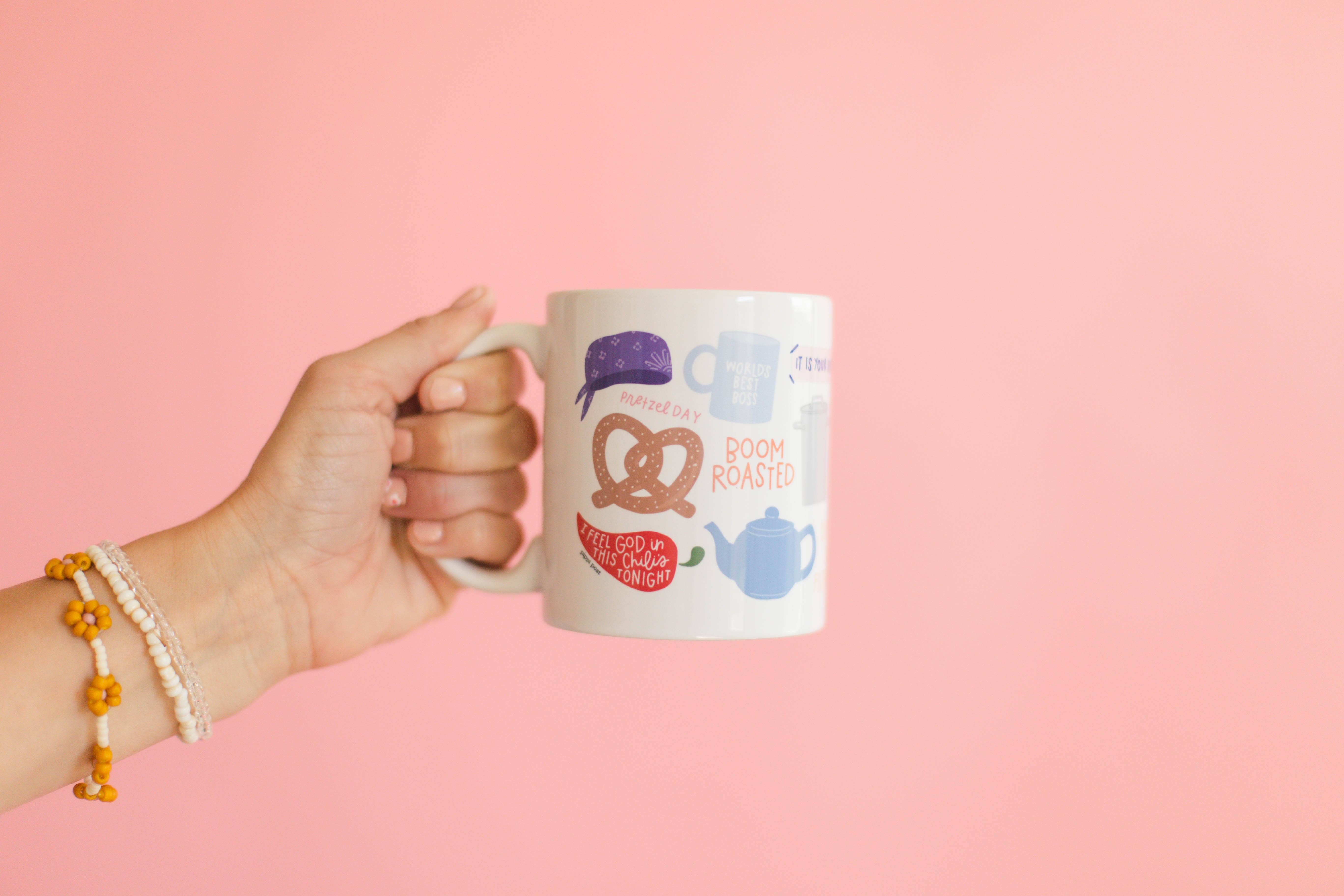 Apportez une touche ludique à votre collection de vaisselle avec cette tasse en céramique fantaisiste dotée d'une anse en forme de banane sculptée. La base blanche comprend des silhouettes de bananes en relief doux pour une texture supplémentaire, lui donnant un aspect amusant et dimensionnel parfait pour les cafés, les présentoirs de cadeaux de boutique et les collections à thème fruité. Fabriquée en céramique durable avec une finition brillante, cette tasse contient environ 12 oz, ce qui la rend idéale pour le café, le thé, le matcha ou un smoothie matinal. Son design original mais raffiné en fait une option de cadeau remarquable, un sujet de conversation et un best-seller au détail pour les acheteurs qui aiment les accents de maison uniques.