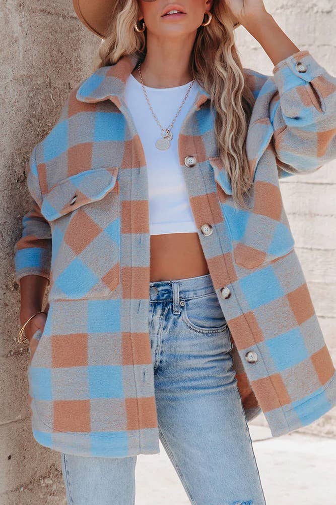 Vous adorerez les carreaux dans cette veste classique Un imprimé à carreaux intégral, des poches de poitrine sur le devant et des boutons en forme de tortue créent un style chic Fabriqué en tissu de haute qualité pour un port durable Portez cette couche ample et décontractée par-dessus nos hauts courts pour un look élégant Cliquez sur nos vestes en gros pour plus de modèles et de designs à la mode