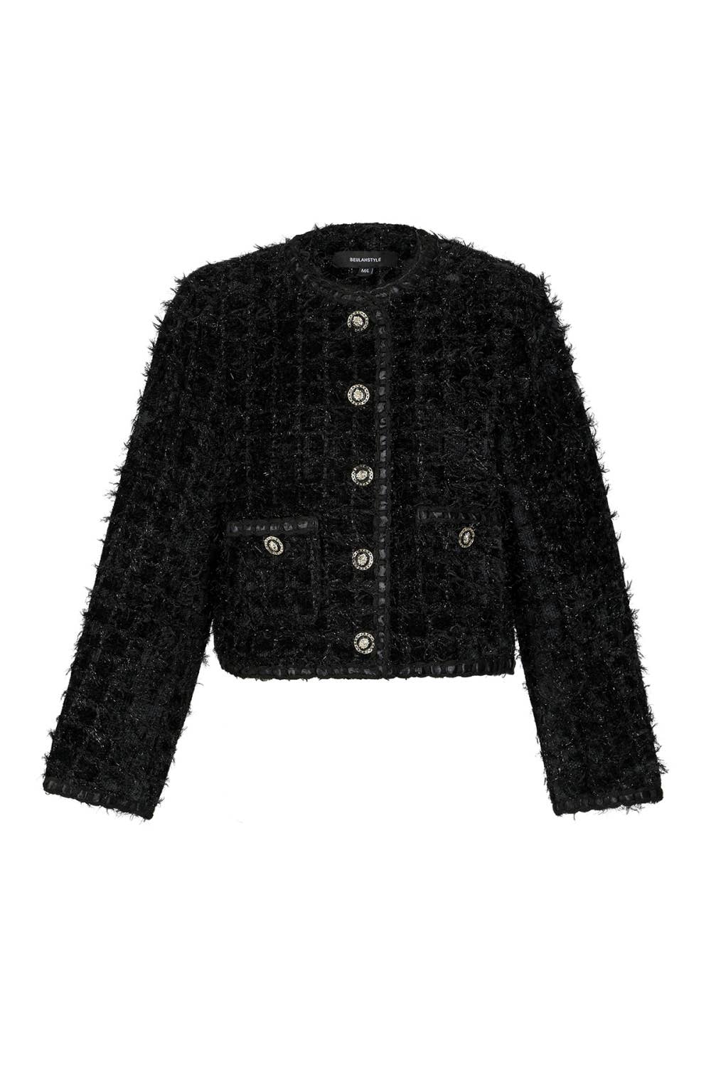Veste courte en tweed avec poches et boutons métalliques, manteau à simple boutonnage pour femme en vente B2B