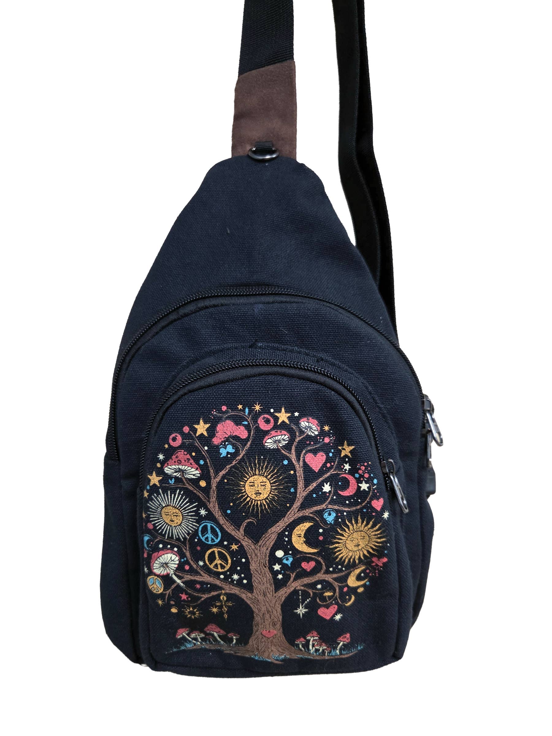 Similicuir, personnage de la série Adventure Time Interchangeable - bandoulière, sac à dos, sur l'épaule Dimensions - Corps : 9” x 9” / Longueur totale (avec jambes) : 15” / Profondeur : 3” / Sangles : 43,5”