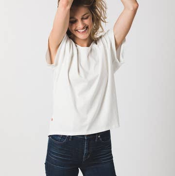 Ce t-shirt est parfait pour se prélasser, dormir et tout le reste. Fabriqué à partir de TENCEL™ Modal léger à respirabilité améliorée, ce tissu est d'une douceur luxueuse. Conçu avec soin pour une coupe confortable et sans stress, avec une encolure légèrement ample et des manches courtes, il mettra en valeur vos courbes naturelles. C'est l'un des favoris des fans que vous ne voudrez plus jamais oublier. Détails du produit : * Tissu : 90 % modal TENCEL™ avec microtechnologie, 10 % élasthanne * Lavage en machine délicat à froid avec des couleurs similaires, séchage au sèche-linge délicat * Tissu tricoté, teint et cousu à Toronto Avantages du TENCEL™ : * Douceur durable * Respirabilité améliorée * Biodégradable * Origine botanique * Production durable * Charge statique minimale Le mannequin mesure 1,80 m et porte la taille S.