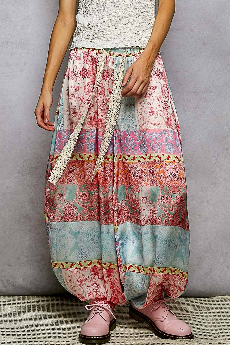 Génial ! Ce magnifique pantalon en satin ressemble presque à une jupe fluide... mais c'est un pantalon ! L'imprimé oiseau de paradis est un imprimé RARE BIRD qui complète la chemise en velours bleu sarcelle avec toutes les nuances de bleu. Taille élastique et cordon de serrage en taille unique. Ne manquez pas celui-ci ! *TOUS LES ARTICLES SONT SURDIMENSIONNÉS ET NE SONT PAS DE TAILLE STANDARD AMÉRICAINE, EN RAISON DU STYLE VINTAGE SHABBY CHIC DANS LEQUEL ILS SONT CONÇUS*