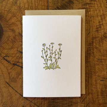 Cartes de vœux imprimées numériquement au format A1 (3,5" x 4,875") avec une linogravure de fleurs de digitale avec des feuilles. Les cartes sont vierges à l'intérieur et comprennent une enveloppe assortie.