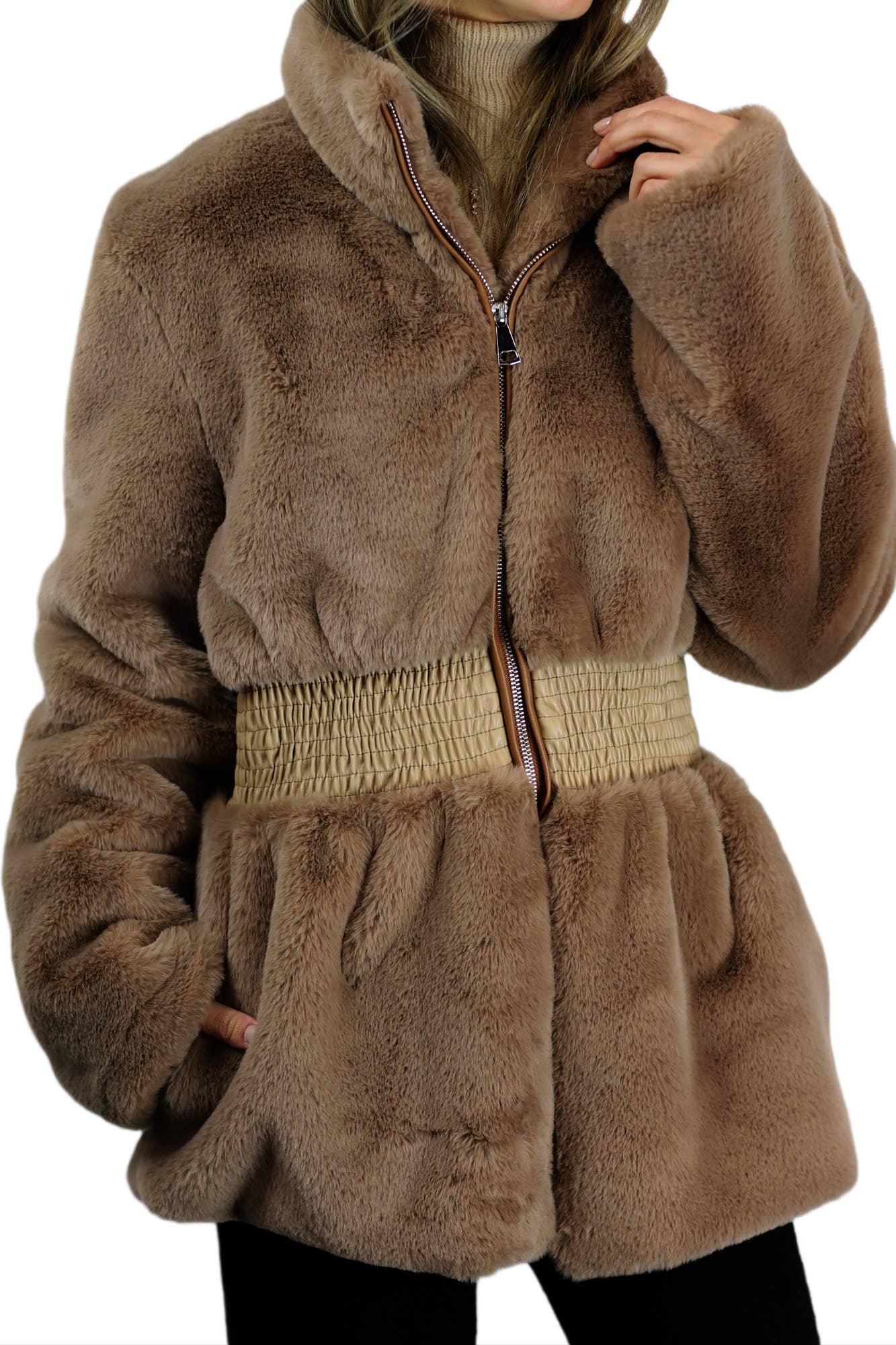 Veste zippée à manches longues et col montant en fausse fourrure en vente B2B
