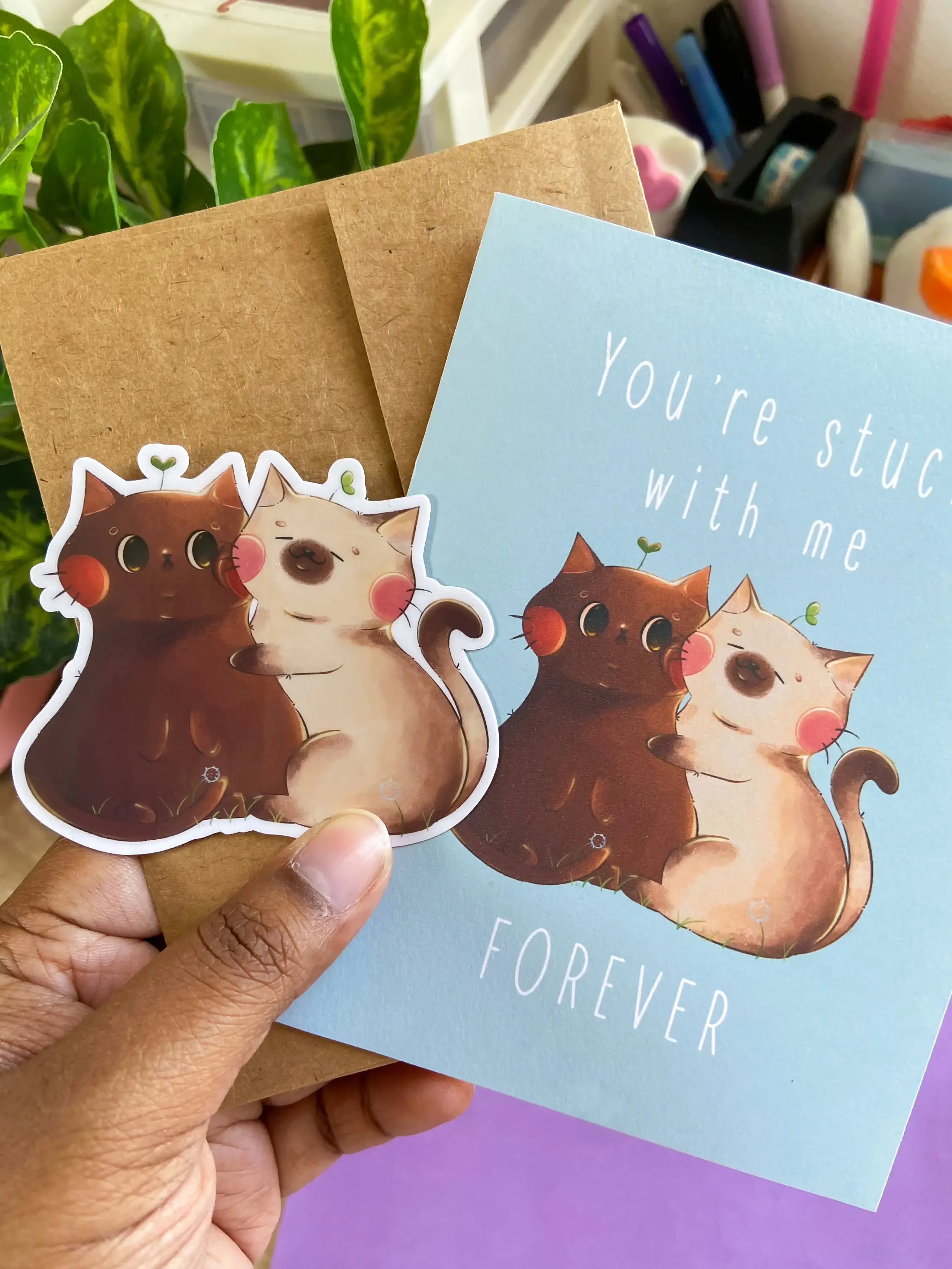 La carte mesure environ 4 x 5,25 pouces et est imprimée sur du papier photo mat robuste. L'intérieur est vide. Peut être combiné avec une enveloppe gommée blanche (option durable) ou une enveloppe autocollante en kraft. La carte et l'enveloppe peuvent également être emballées dans du plastique cellophane transparent ou vous pouvez choisir l'option non emballée. Toutes les cartes sont imprimées et découpées manuellement, de sorte que la taille peut légèrement varier.