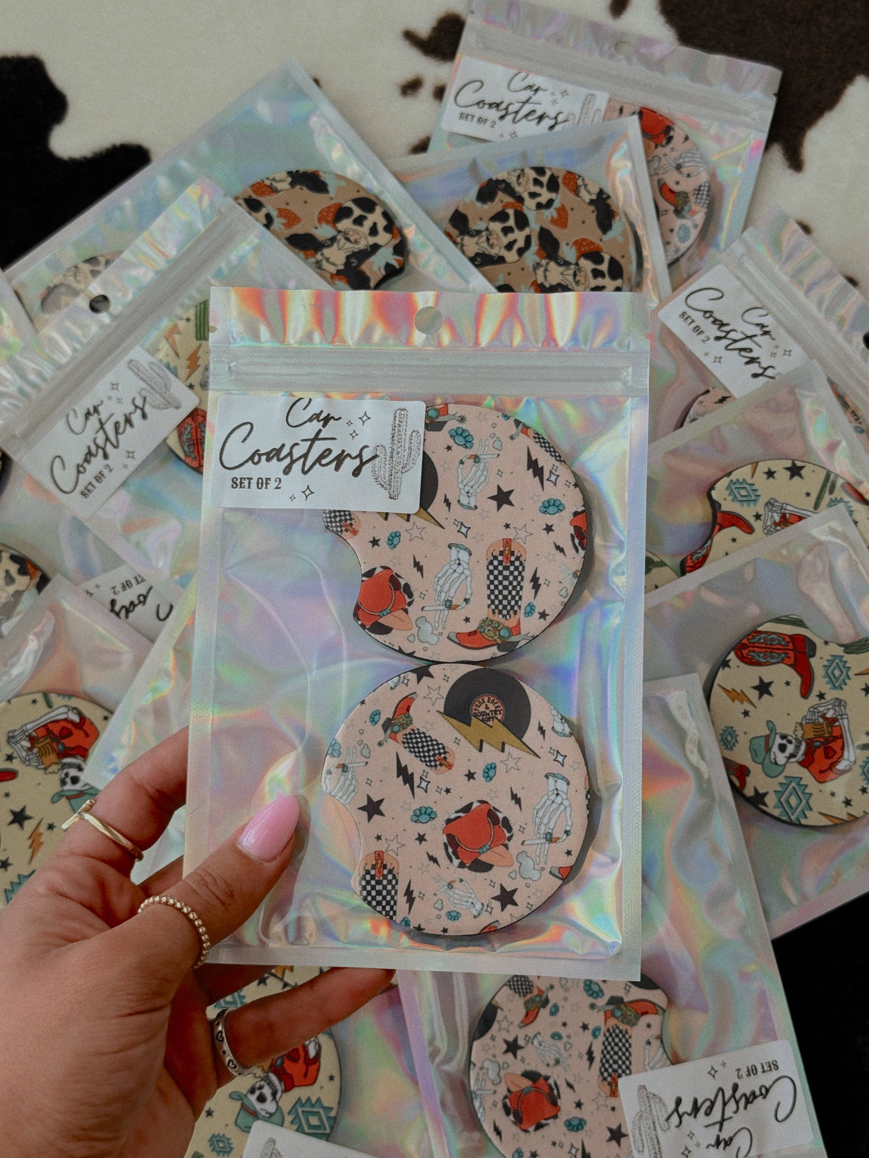 Nos sous-verres sont fabriqués en néoprène épais et sont facilement des produits les plus vendus. Ils constituent le complément parfait à vos accessoires. dans ce lot, vous recevrez 5 modèles identiques, emballés dans un emballage holographique Ils sont ronds et épais de 2,65 pouces et robustes (2 sous-verres pour voiture par ensemble) peut être personnalisable | logo personnalisé et noms de boutquie