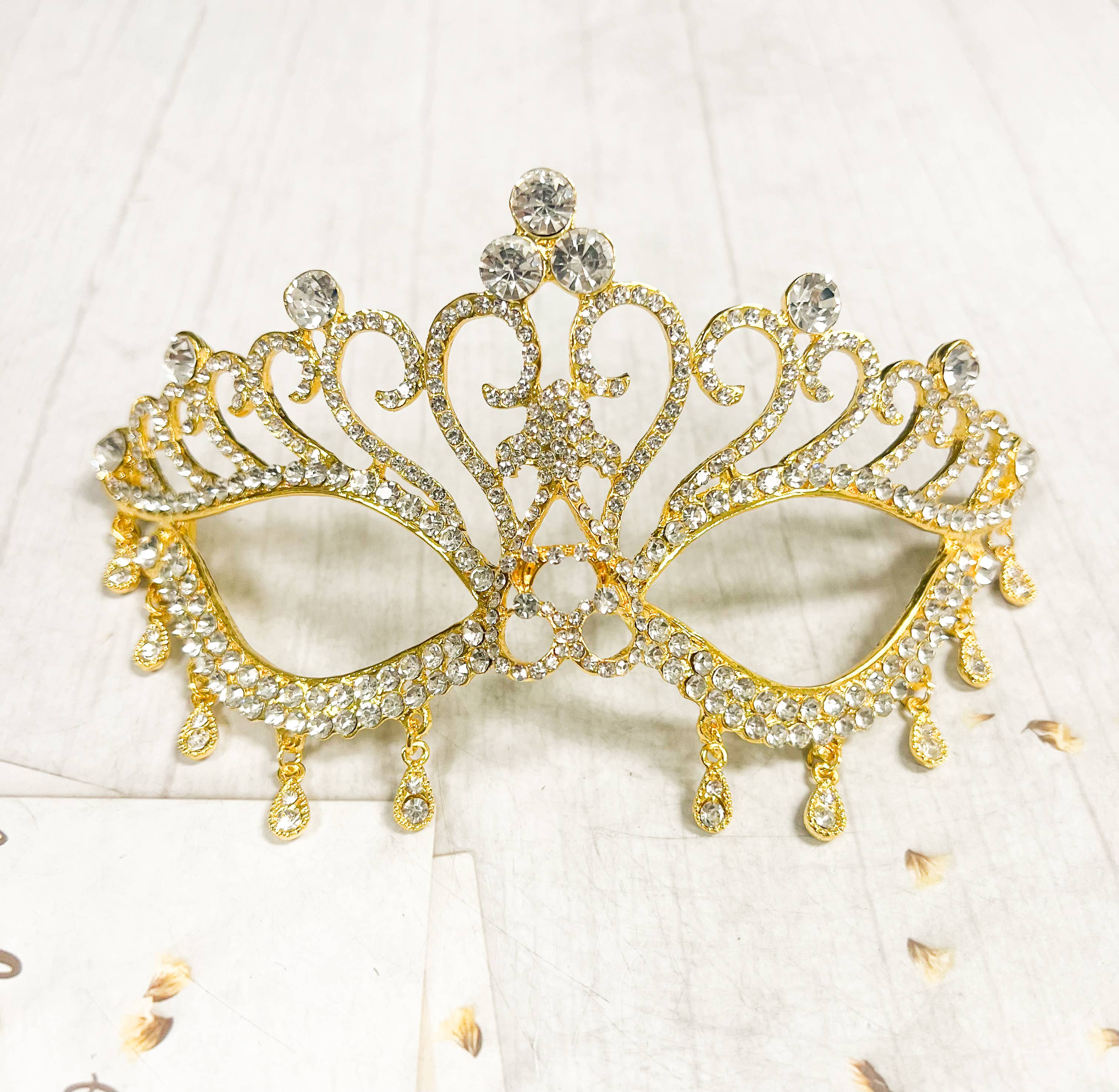Masque de mascarade en cristal de papillon, masque doré pour fête de mariage en vente B2B