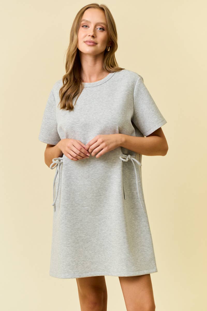 Robe T-shirt à manches courtes longueur mi-cuisse avec panneau latéral en blocs de couleur contrastée et bande d'encolure en blocs de couleur contrastée.