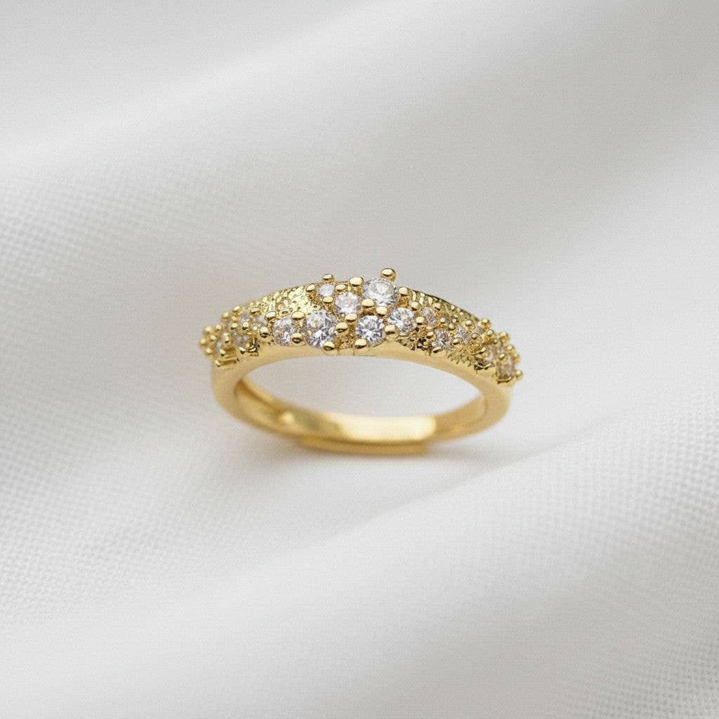 Bague ajustable élégante en forme de croissant céleste en forme de croissant de lune et d'étoile en micro-pavé doré et argenté pour femme Matériau : Laiton avec placage en or véritable, sans ternissement Taille Réglable - Taille unique qui convient à la plupart des personnes - TAILLE US 7 POUR INFO, Hypoallergénique Résistant au ternissement Sans nickel ni plomb