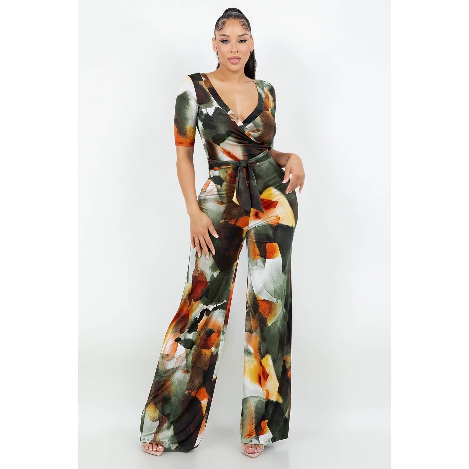 Combinaison à imprimé ouvert sur le côté J7414