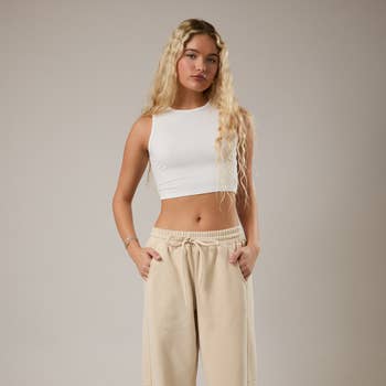 * Style n° : DZ24A197_4 Ce pantalon de survêtement est confectionné dans un tissu doux et présente une silhouette taille haute avec une taille élastiquée pour un ajustement confortable. Les jambes à coupe décontractée sont accentuées par des plis pour créer un look élégant. Les poignets de cheville resserrés complètent le look. 80 % coton / 20 % polyester Le mannequin mesure 1,75 m, a un tour de poitrine de 81 cm, un tour de taille de 58 cm et un tour de hanches de 89 cm et porte une taille S Importé. Conçu aux États-Unis
