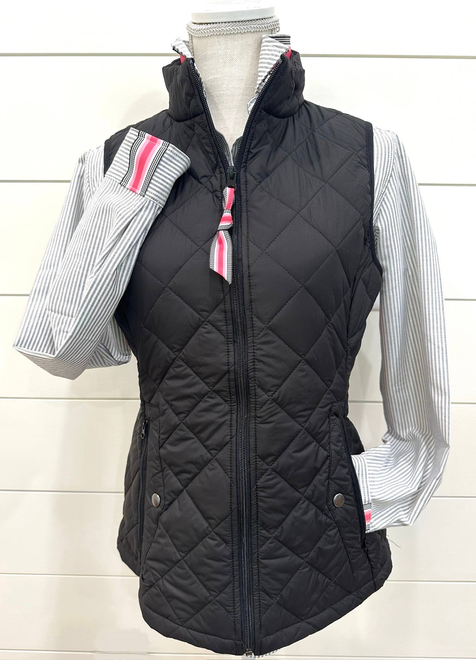 Gilet rembourré Maggie May - noir à rayures noires, blanches et rouges