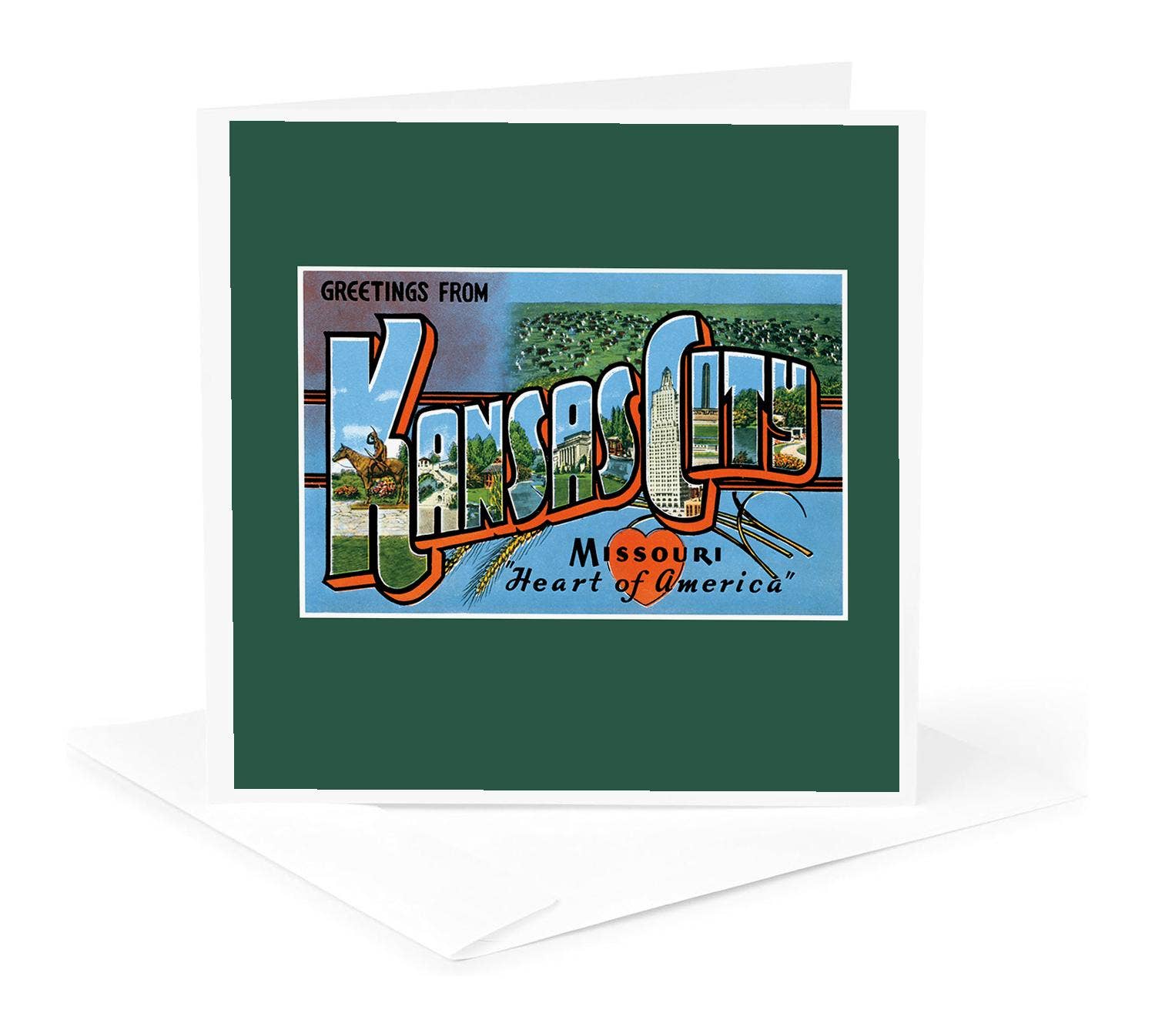 Carte de vœux avec carte et panorama urbain de Saint-Louis dans le Missouri en vente B2B