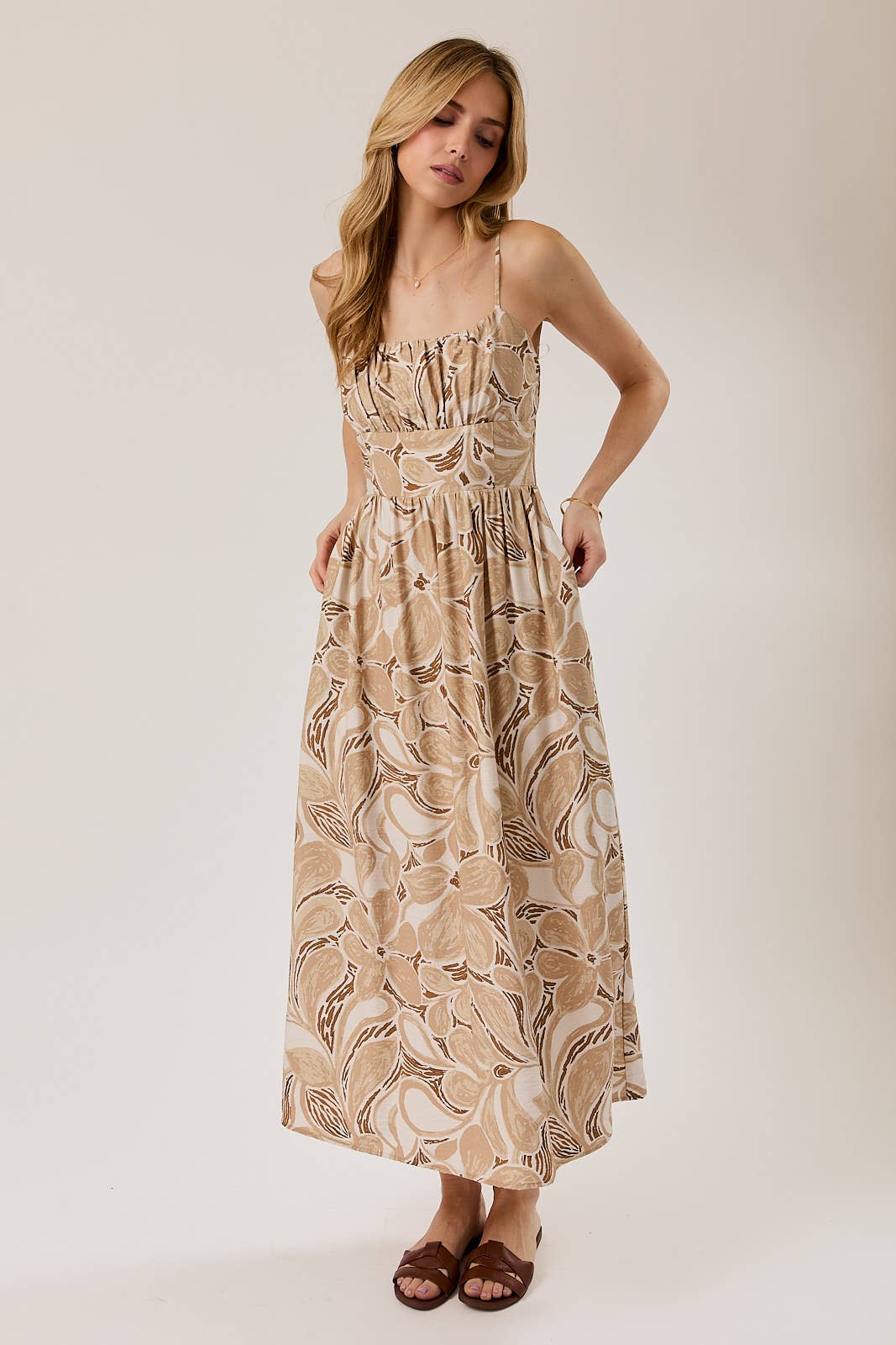 Robe midi imprimée mixte avec bordure contrastante en vente B2B