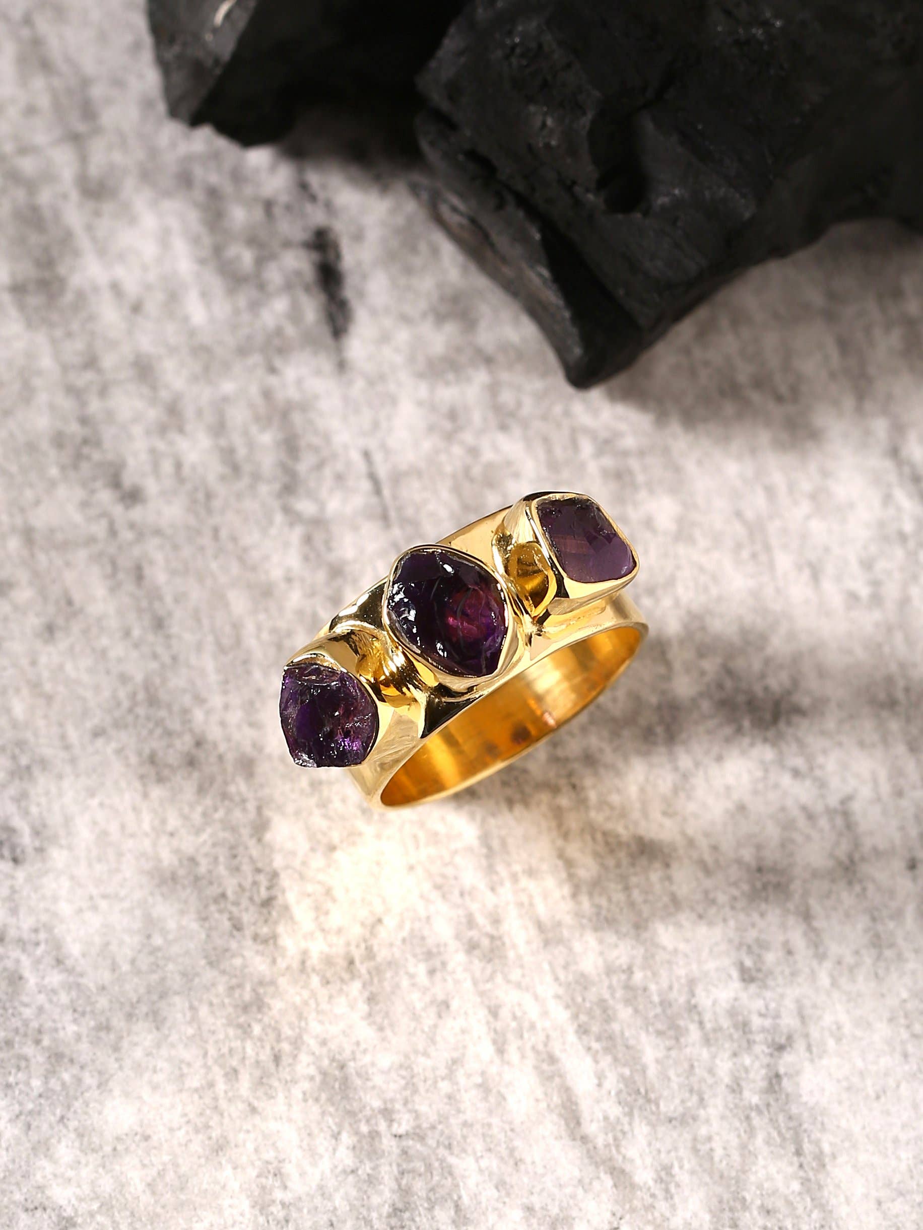 Détails : - Bagues Druzy à trois pierres entièrement naturelles - Ces pierres proviennent du Brésil - Or 18 carats galvanisé - Toutes les bagues sont réglables pour s'adapter à tous les doigts - Chaque design est unique en son genre.