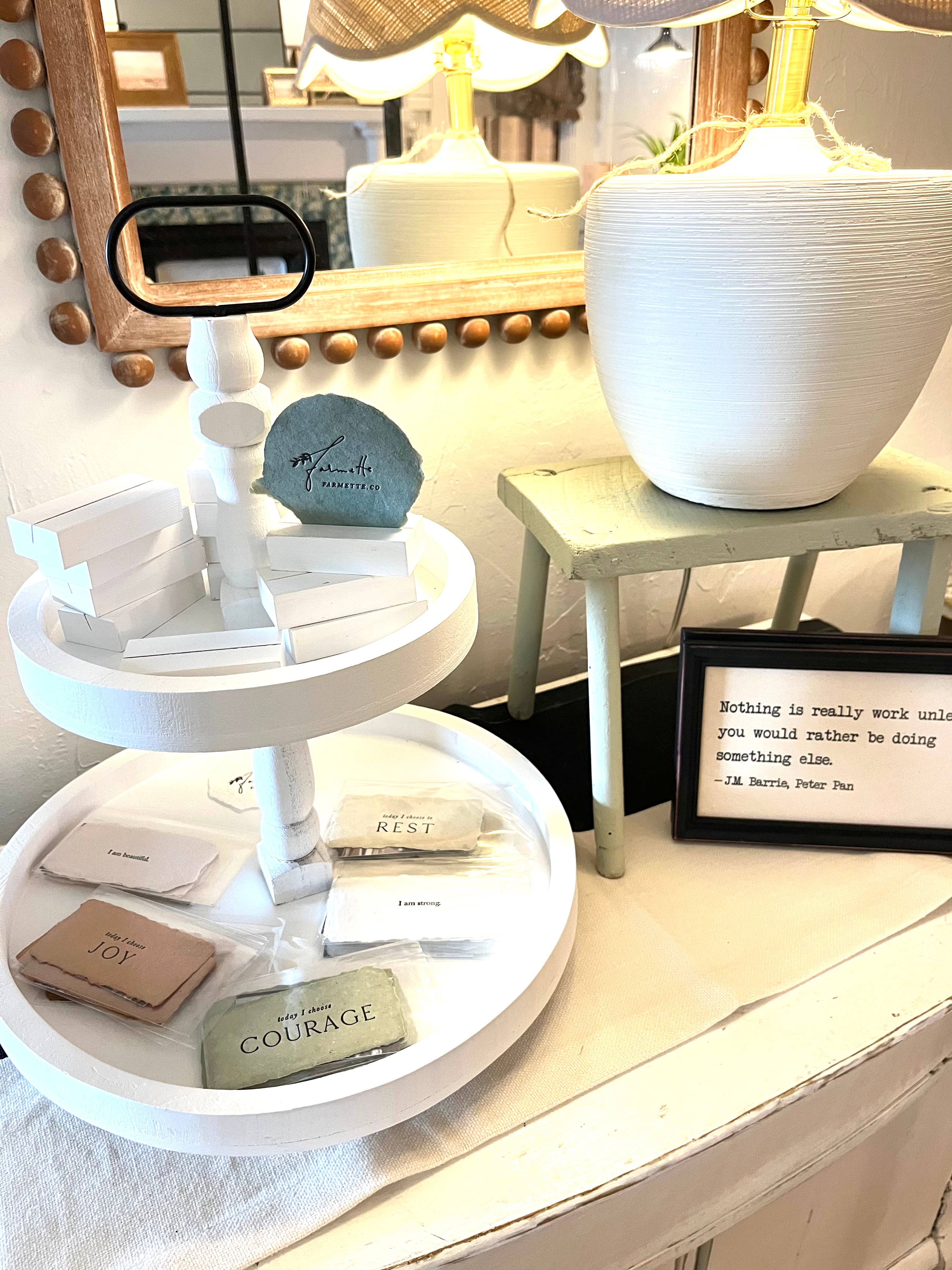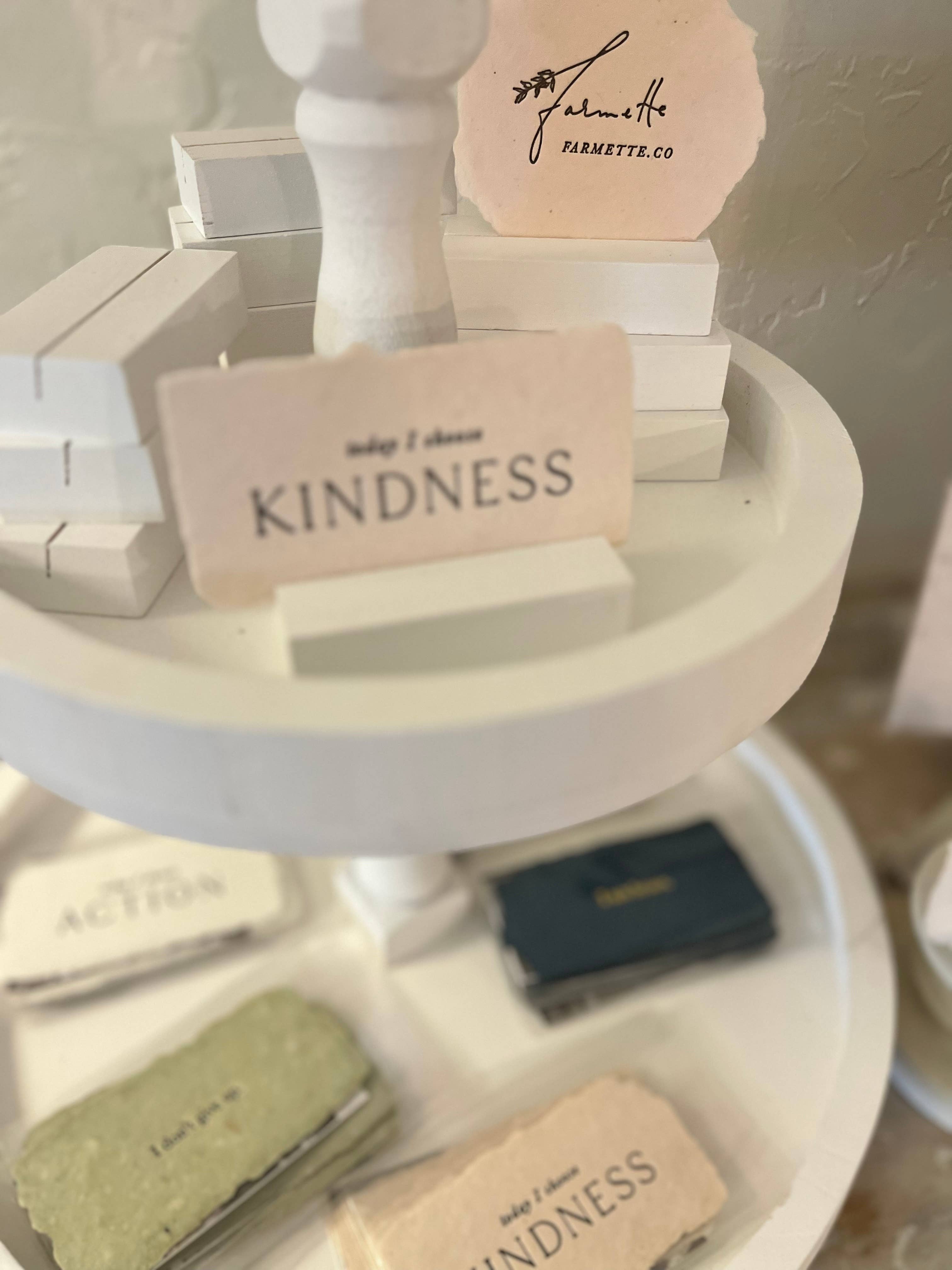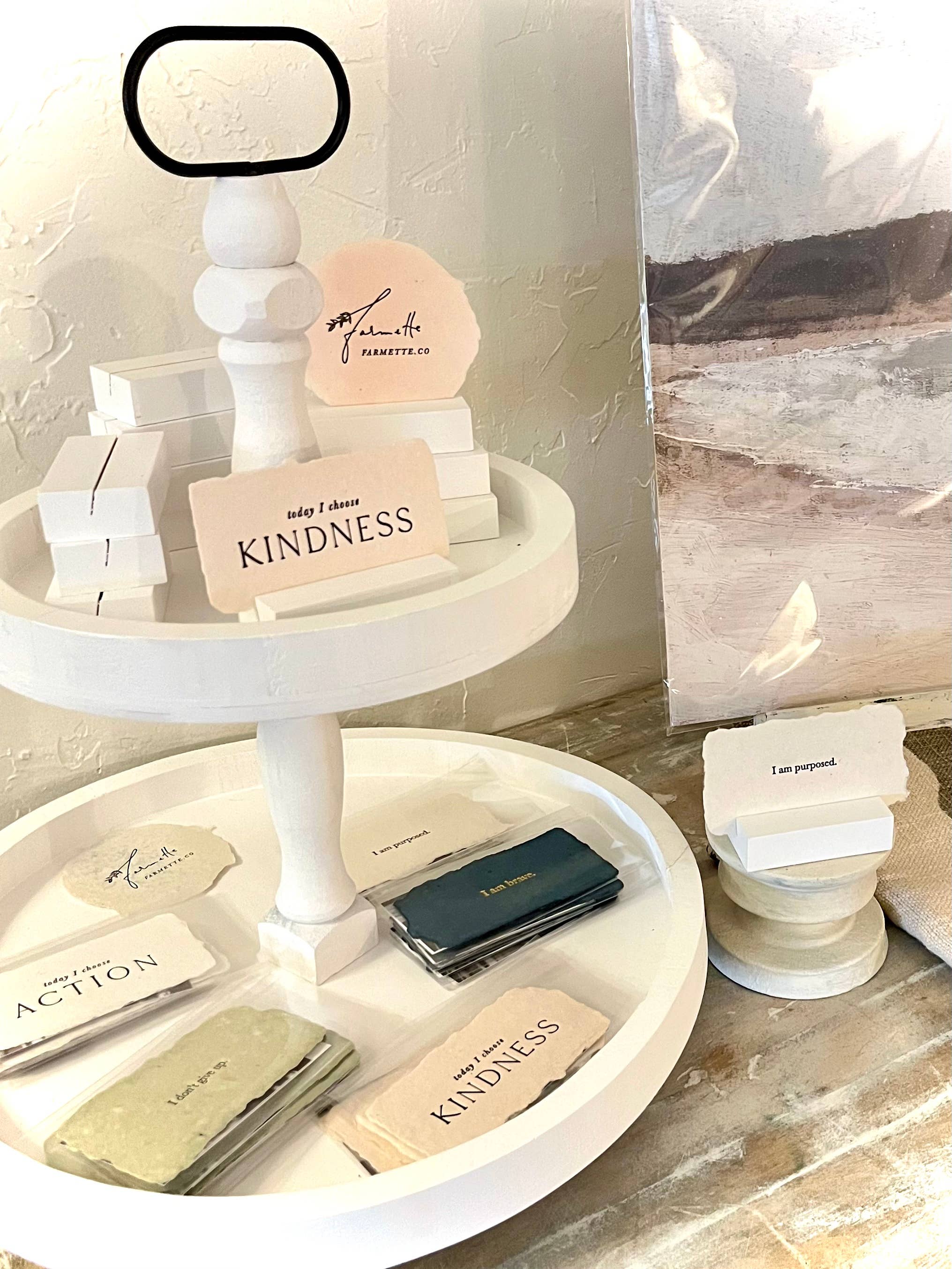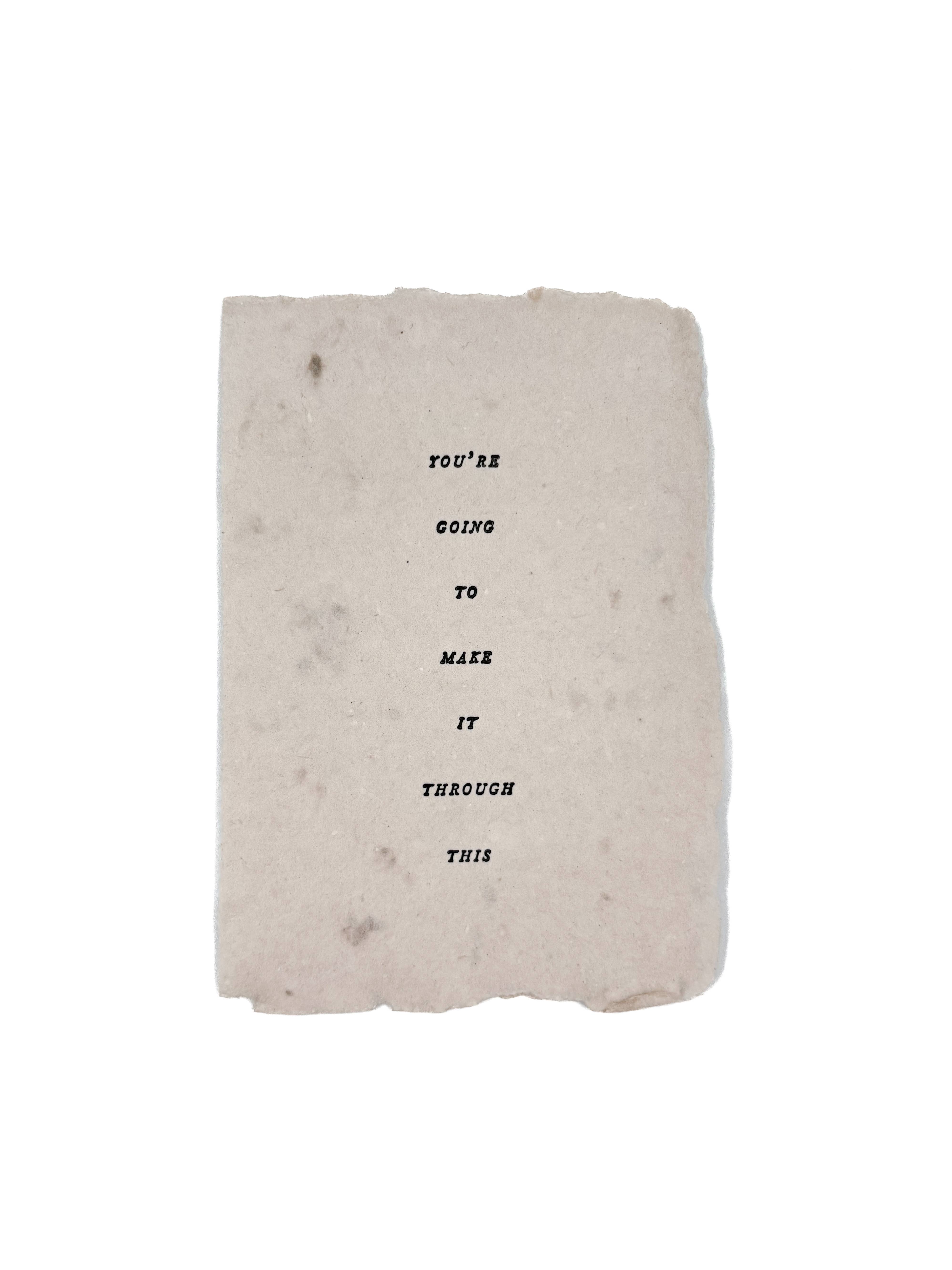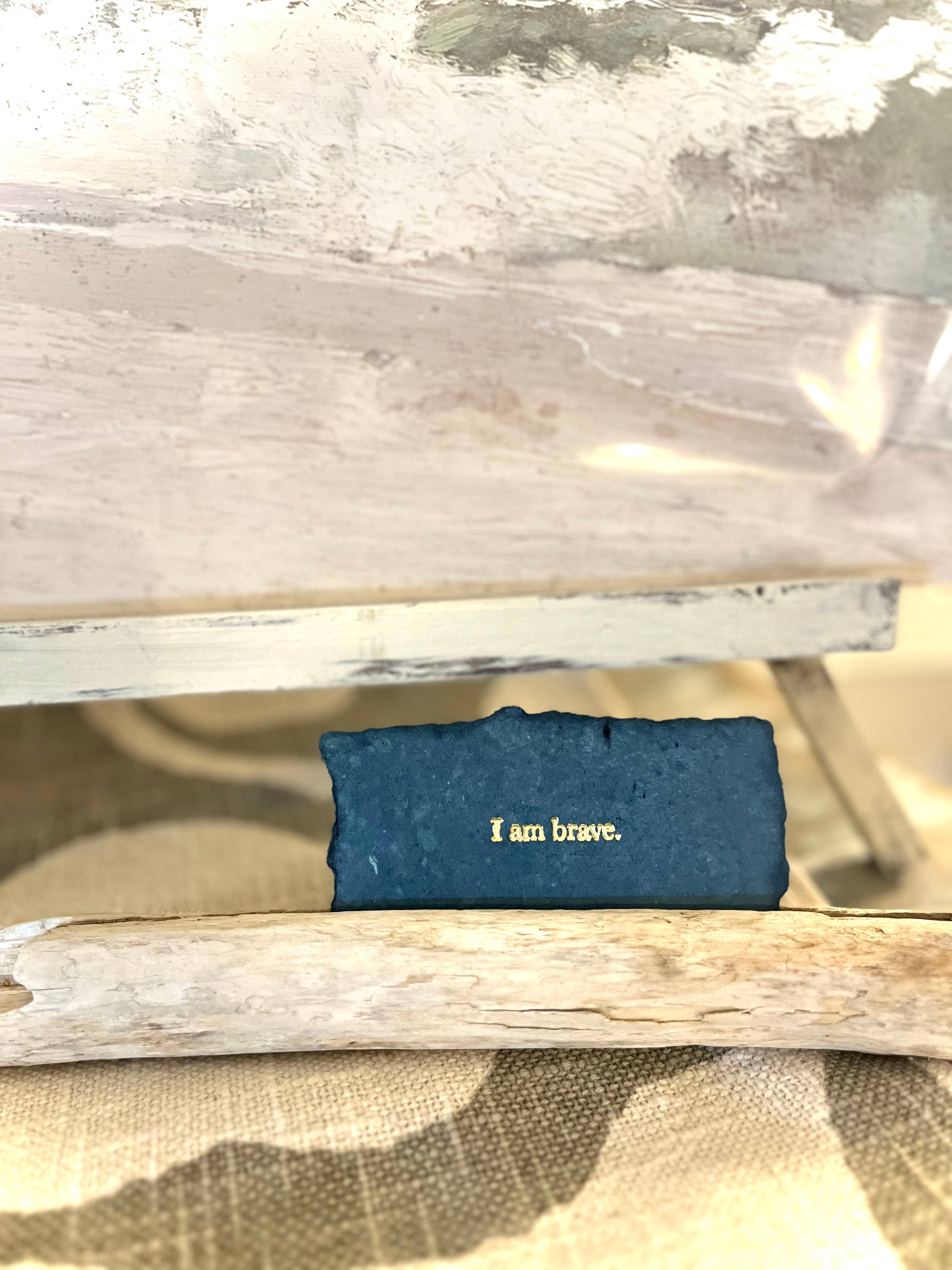 Papier fait main Blush avec encre typographique noire. Les choses que vous vous dites sur vous-même façonnent qui vous êtes et qui vous deviendrez. Cette affirmation en papier fait à la main est destinée à votre miroir, bureau, mur ou tout autre endroit où un petit mot à soi sera un joli rappel qui vaut la peine d'être dit encore et encore. Carte en papier faite à la main avec quatre bords entièrement décorés, environ 2 1/4 pouces x 4 1/4 pouces. Le devant est imprimé en typographie. Livré avec une petite carte décrivant la collection d'affirmations, et une autre avec des photos et quelques informations sur notre processus. La carte d'affirmation indique « Je suis belle ». Vente en gros uniquement : MOQ 6