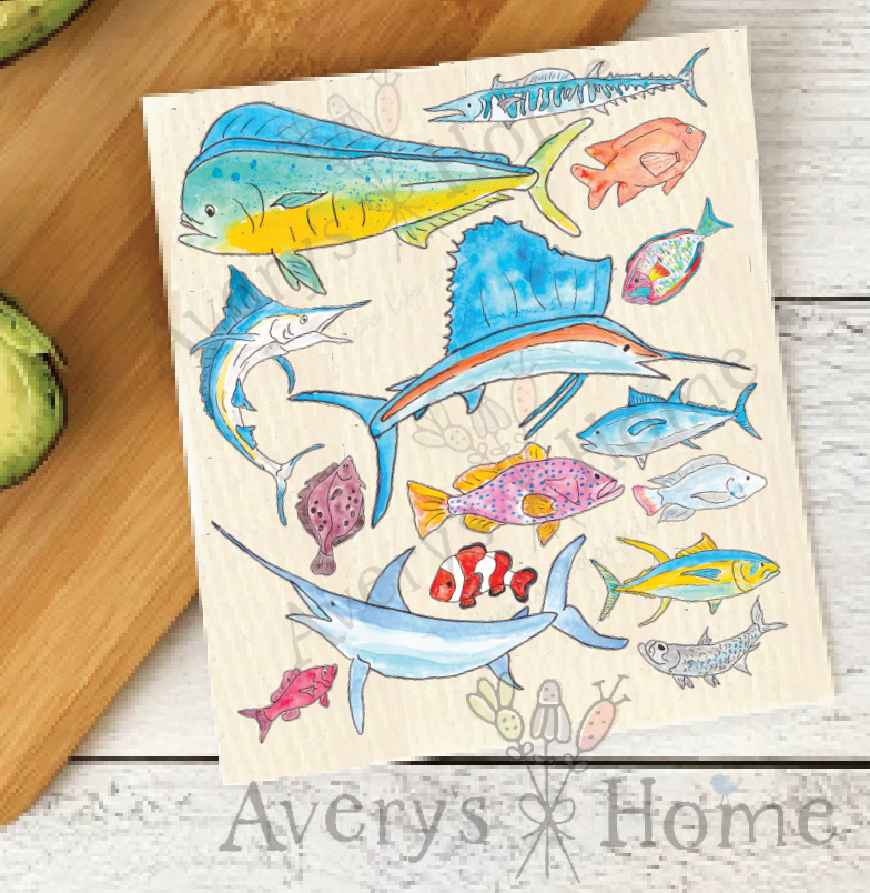 Torchon suédois - Sardines - Bleu en vente B2B