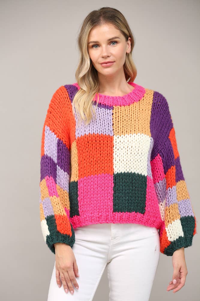 Pull en maille torsadée à empiècements colorblock