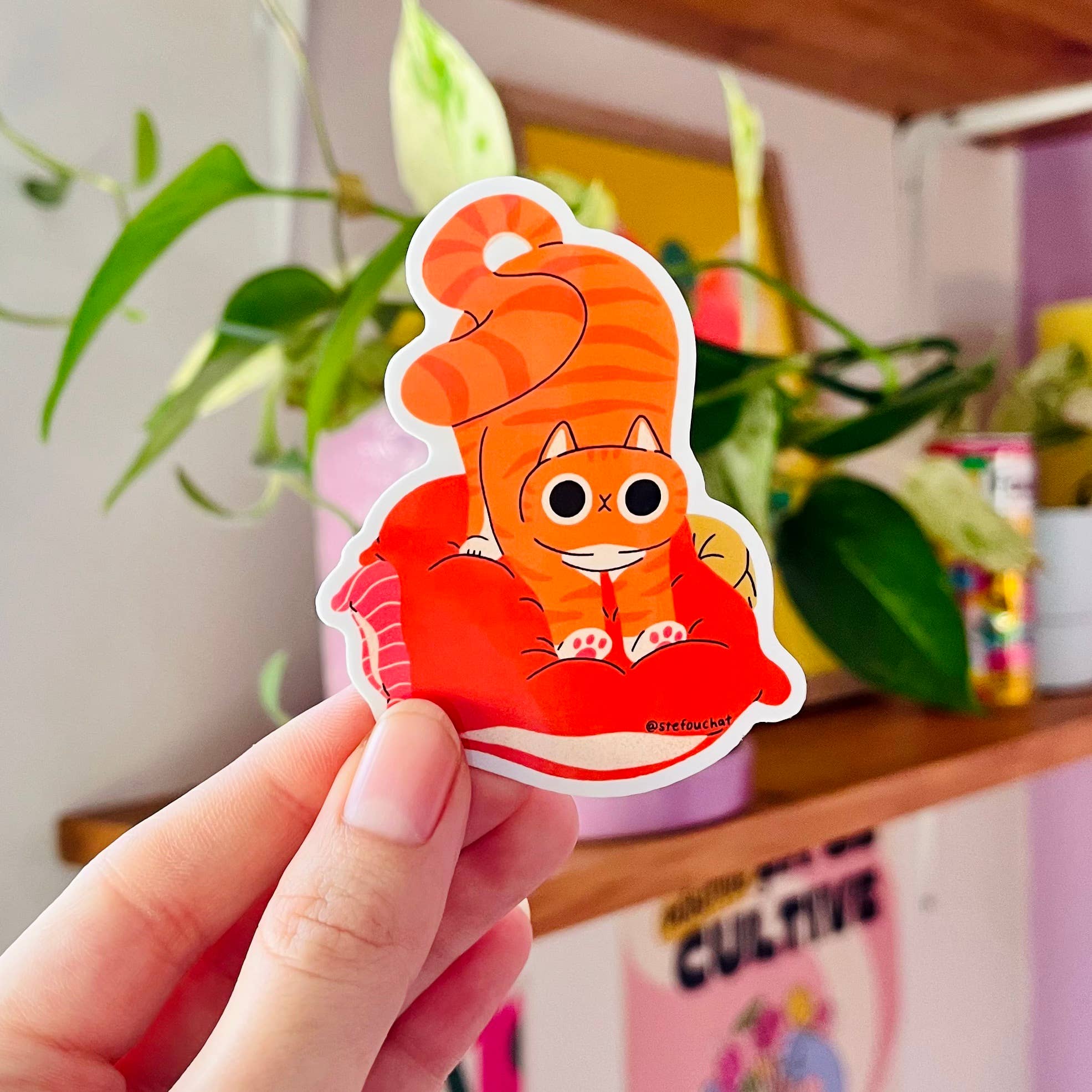 Des chats mignons... dans l'espace ! Cet autocollant représente un chat tigré brun assis dans une fusée et zoomant sur le ciel ! Tous les autocollants JamKats sont plastifiés et découpés (à la main) par Zac ! Bien que leur revêtement en vinyle brillant leur confère une certaine résistance à l'eau, ils ne sont ni imperméables ni résistants aux intempéries. Ils s'en sortiront mieux dans des journaux ou sur des ordinateurs portables !