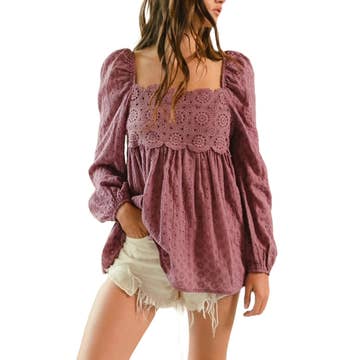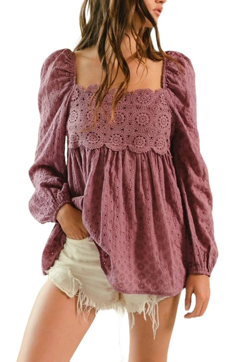 CET3907 - BLOUSE EN DENTELLE À MANCHES CLOCHES 3/4