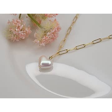 Collier cœur et trèfle en perle d'eau douce plaqué or 18 carats anti-ternissure en vente B2B
