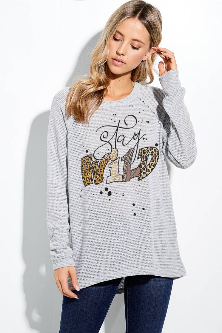 Restez Sauvage T-shirt Graphique Rétro Grunge | Couleur Confort