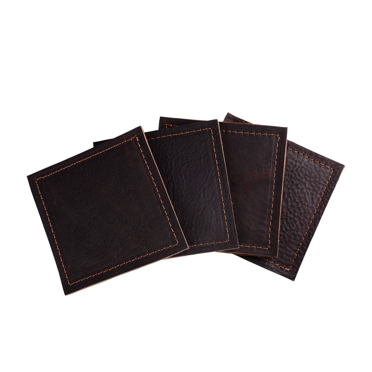 Ce sont des sous-verres en cuir de bison à une seule couche. Ensemble de 4, carrés avec des coins arrondis. Variété de couleurs brunes, au choix du fabricant. La texture granuleuse varie entre les lots, certains sont assez lisses, d'autres plus texturés. Si vous avez besoin d'une couleur spécifique, si vous souhaitez qu'ils soient tous de la même couleur, texture, etc., veuillez nous contacter avant de passer votre commande.
