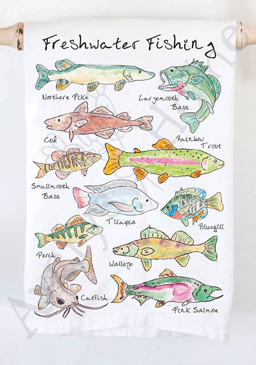 Illustration de trois espèces de truites - arc-en-ciel, fardée et mouchetée - imprimée à la main en sérigraphie au charbon de bois sur des torchons en coton ultra doux et absorbant ! Imprimé en sérigraphie dans notre atelier avec une encre à base d'eau écologique et durable. Les torchons sont fixés et prêts à l'emploi. ▪ Un seul torchon ▪ 100 % coton, fabriqué aux États-Unis ▪ Le torchon mesure environ 27 pouces x 27 pouces et dispose d'une boucle de suspension pratique dans le coin Des variations subtiles dans les couleurs de teinture, le placement de l'image et l'encre peuvent se produire car ils sont imprimés à la main, rendant chacun unique et magnifique ! Fait un excellent cadeau !