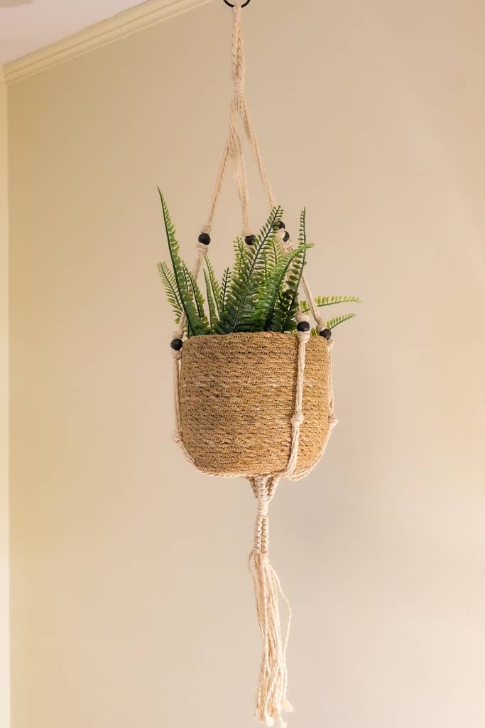 Suspension pour plante en macramé coton fait main avec perles (106 cm)