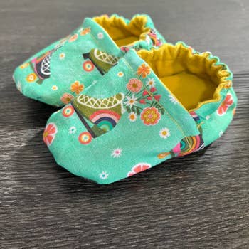 Vous recherchez des mocassins tendance et confortables qui resteront sur les pieds de votre bébé ou de votre tout-petit ? Ces mocassins uniques fabriqués à la main attireront tous les regards et peuvent être associés à n'importe quelle tenue de votre bébé ou de votre tout-petit. Chaque paire de mocassins fabriquée à la main est fabriquée avec un tissu résistant et plusieurs couches de feutre et doublée d'une somptueuse polaire pour plus de confort et pour garder les pieds de votre bébé doux et respirants. Le dimensionnement est le suivant : 0-3 mois : 3,25 pouces 3 à 6 mois : 4,5 pouces 6 à 9 mois : 4,75 pouces 9 à 12 mois : 5,25 pouces 12 à 18 mois : 5,5 pouces 18 à 24 mois : 6 pouces 2 à 2,5 ans : 6,5 pouces