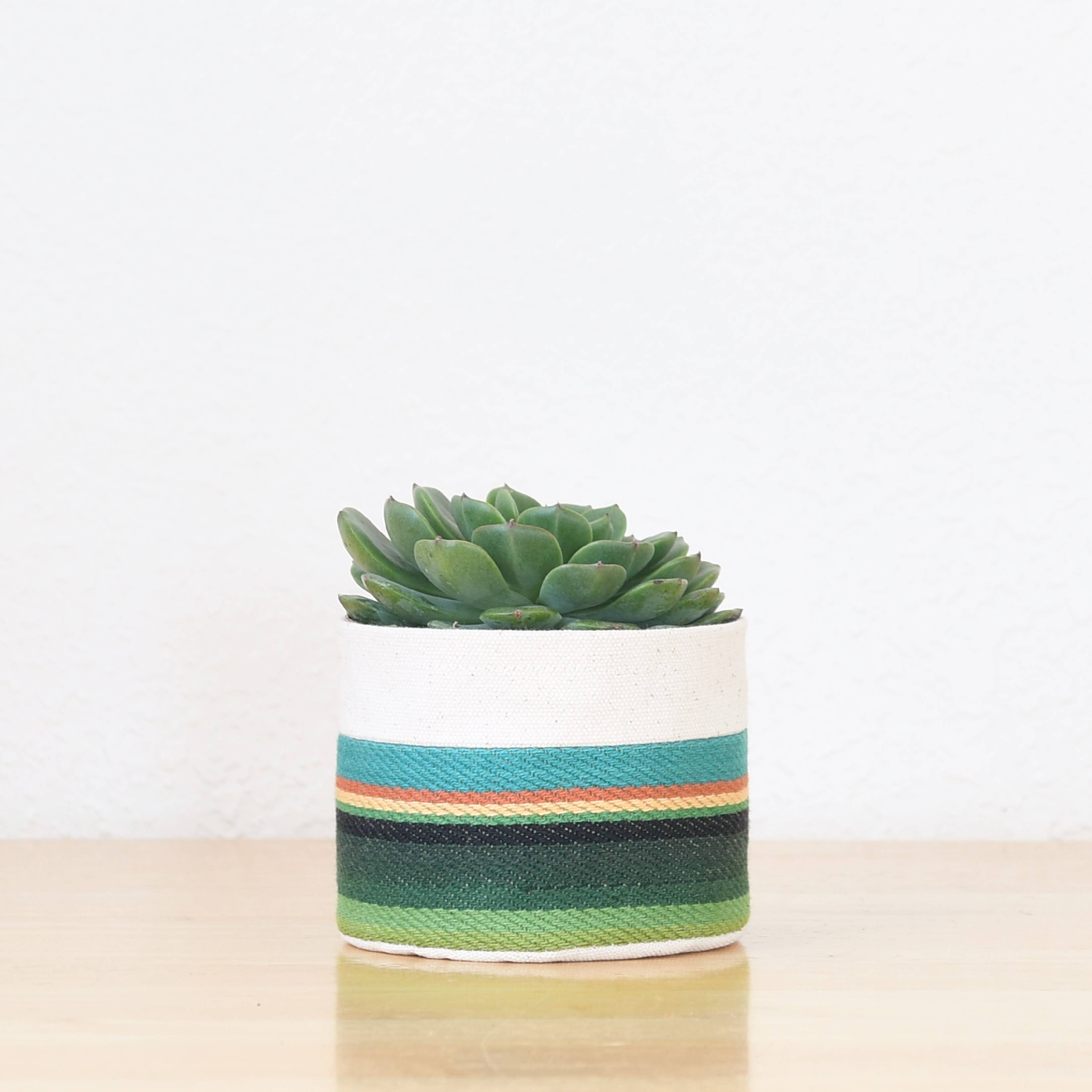 Illuminez votre bureau ou votre table avec cette jardinière en toile imprimée au bloc ! Ce pot en tissu s'adapte sur un pot en plastique standard de 3 3/4 po x 3 po. La jardinière est imprimée à la main sur un tissu en toile 100 % coton, avec une doublure en toile 100 % coton. Insert de soucoupe en plastique inclus. Bien qu'ils soient parfaits pour les plantes, ces contenants peuvent également contenir tous vos petits objets. Fabriqué à la main par Gray Green Goods aux États-Unis. Remarque : les jardinières sont fabriquées sur commande et le temps de production peut varier. (Plante non incluse)