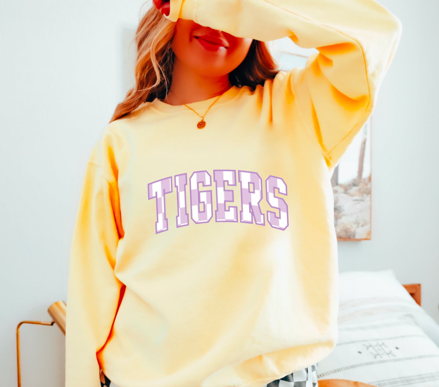 Sweatshirt de football illustré avec mascotte de tigre de LSU en vente B2B