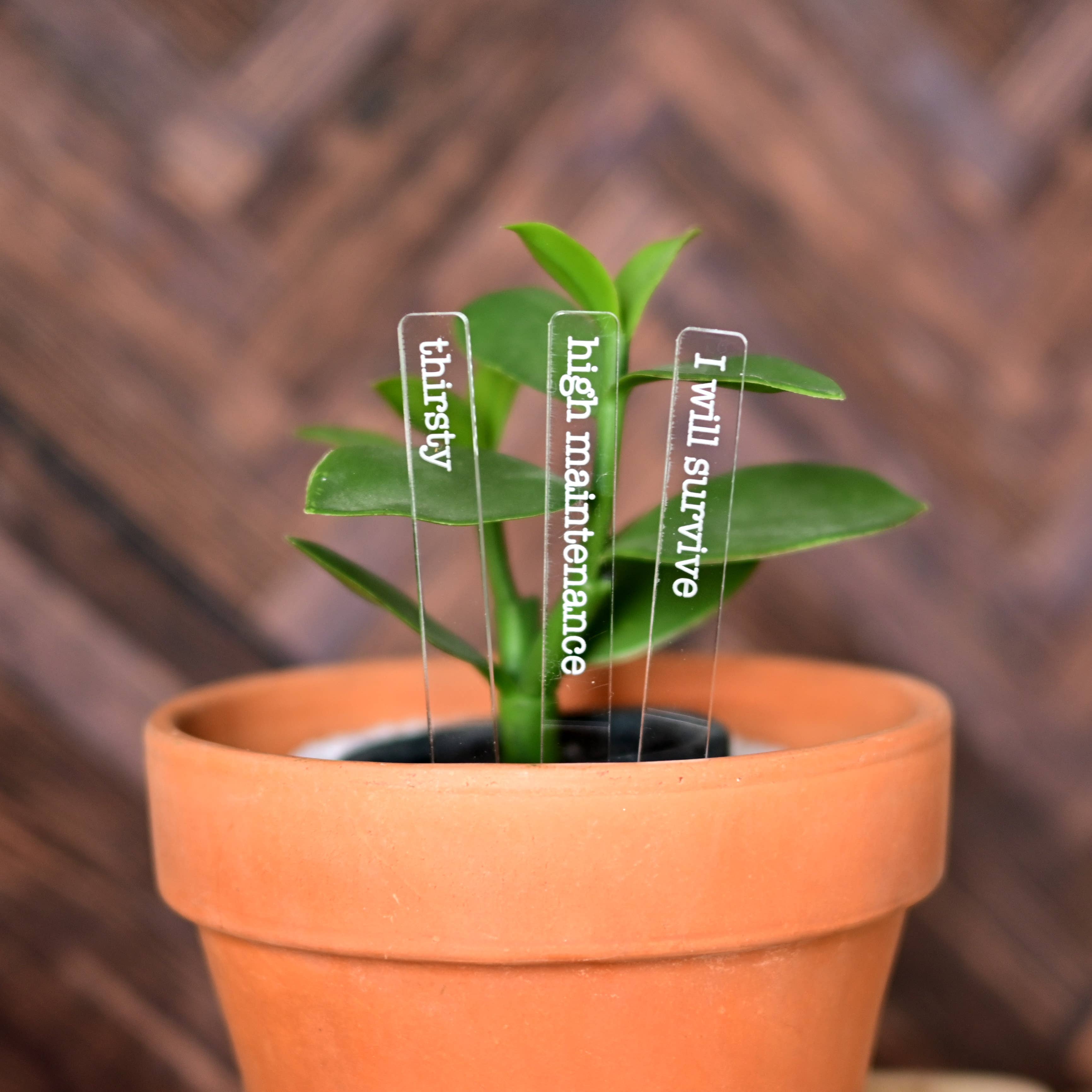 Ces marqueurs de plantes en bois amusants gravés au laser constituent un ajout adorable à vos plantes d'intérieur ou à votre jardin en pot. Donnez de la personnalité à vos plantes en choisissant vos dictons végétaux préférés ! C'est également le meilleur cadeau pour tout amateur de plantes ! ♥ Choisissez vos dictons préférés dans notre menu déroulant ♥ Fabriqué à partir de contreplaqué de bouleau de la Baltique inachevé ♥ Dimensions approximatives : 5,25 pouces de haut et 1/8 pouces d'épaisseur (la largeur dépend de la longueur du dicton que vous choisissez) ♥ Chaque panneau de plante est unique en son genre, le grain et la couleur du bois VARIENT légèrement d'une plante à l'autre, ce qui ajoute à la beauté naturelle et au caractère unique du bois ! L'obscurité de la gravure peut également varier légèrement. Certains piquets peuvent présenter de légères marques de brûlure sur le dos en raison du processus laser. *Aucune finition ni teinture n'est appliquée sur nos marqueurs pour plantes. Veuillez noter que la durée de vie des piquets varie en fonction du taux d'humidité, du climat et du type de sol. * Veuillez noter que chaque écran est différent, les couleurs peuvent légèrement différer de ce que vous voyez sur votre écran.