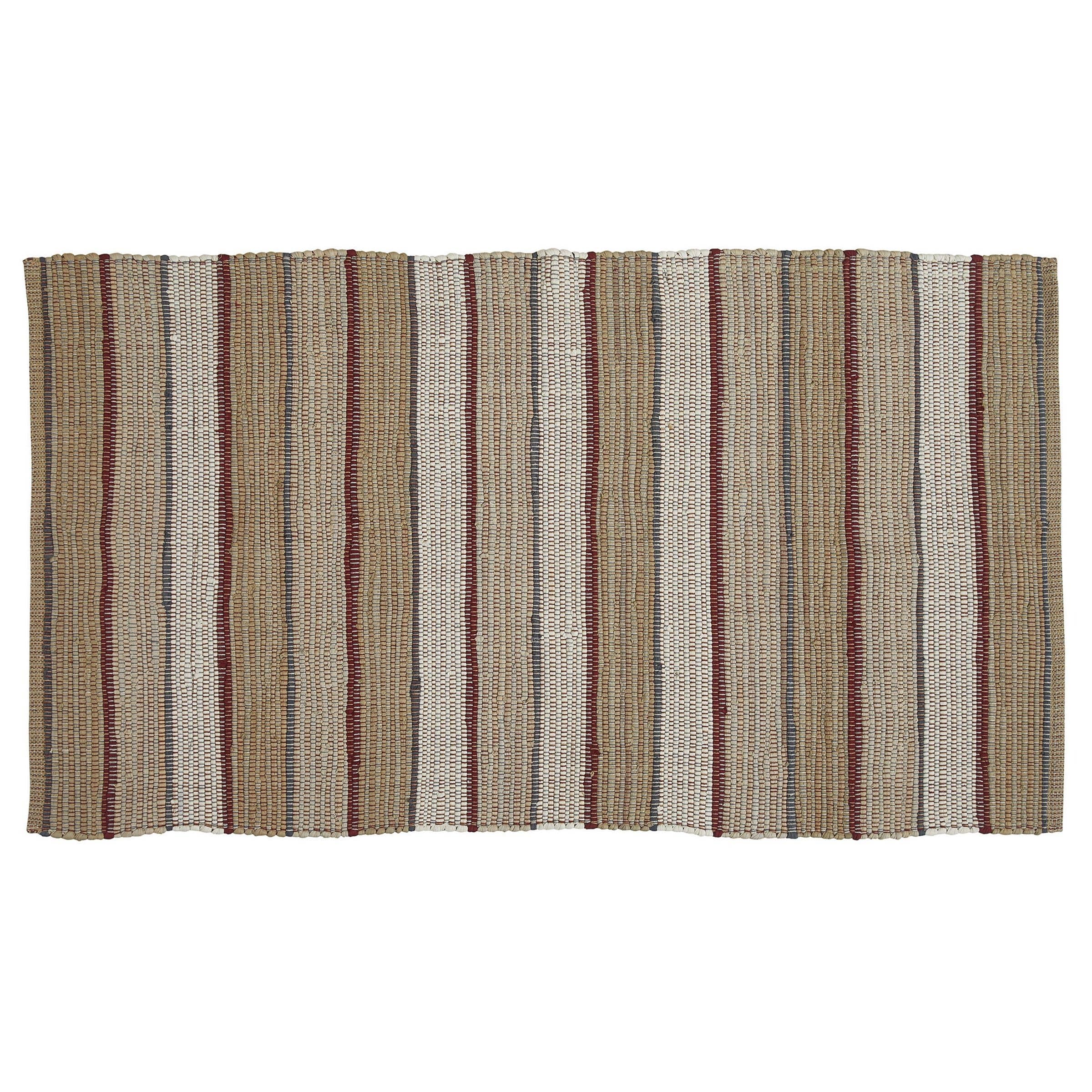 Chez Nuloom, nous croyons que les revêtements de sol et l'art ne devraient pas être mutuellement exclusifs. Quel design ne se démode *jamais* ? Les rayures ! Ne cherchez pas plus loin que le tapis en jute rayé Hanna, et vous verrez pourquoi. Cette pièce polyvalente et de qualité haut de gamme est très accessible. Que votre espace soit traditionnel ou penche vers le bohème, cette beauté aux tons chauds en fera la fondation parfaite. Caractéristiques : * Style : Rustique * Tissage : Tissage plat * 100 % jute, fabriqué en Inde * Ce tapis en fibre naturelle, à la fois durable et élégant, est parfait pour votre chambre, salon, salle à manger, cuisine ou couloir * Ce tapis tissé à la main a une épaisseur de 0,25" permettant un placement pratique dans les entrées et sous les meubles * Passez l'aspirateur sur votre tapis en jute 1 à 2 fois par semaine au niveau de puissance le plus bas ou avec un accessoire à main et nettoyez les taches si nécessaire avec un détergent doux * Nous recommandons d'utiliser un sous-tapis pour offrir un amorti supplémentaire et pour éviter tout glissement éventuel sur votre sol. Les sous-tapis servent de couche protectrice pour votre sol et votre tapis contre l'usure, prolongeant la durée de vie de votre tapis. * La germination et les débris sont courants en raison de la fabrication à partir de fibres végétales, coupez les fils lâches avec des ciseaux et nettoyez régulièrement sous votre tapis.