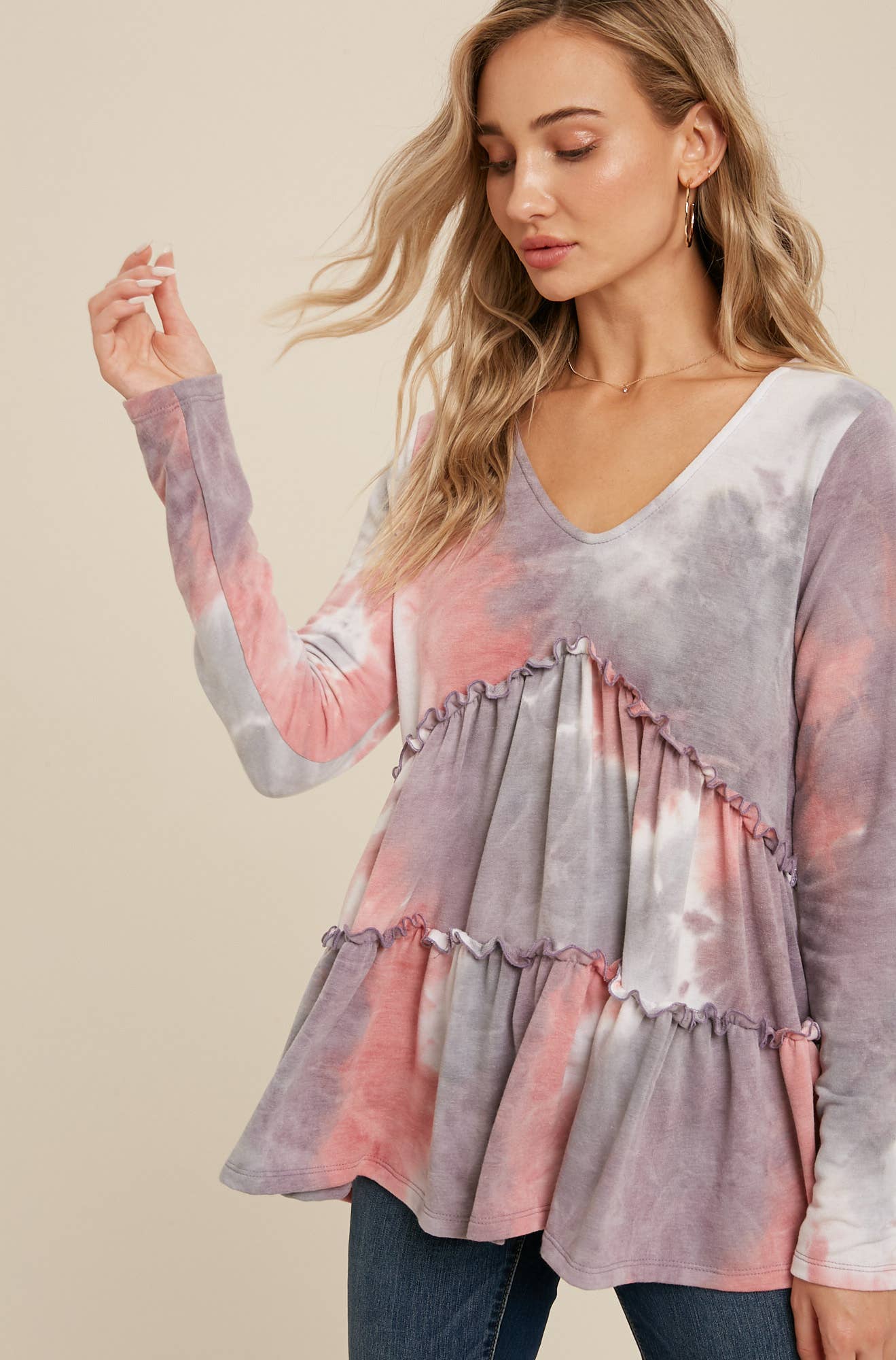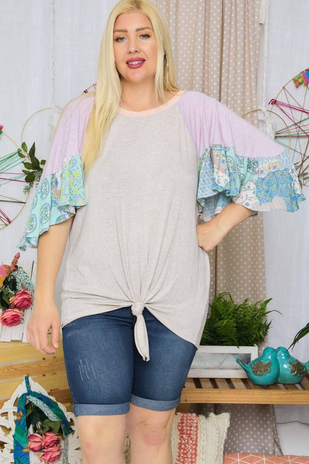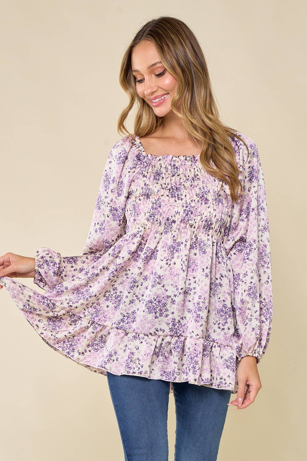 Vente d'usine T1042H Haut à manches longues avec détails manches bouffantes en vente B2B