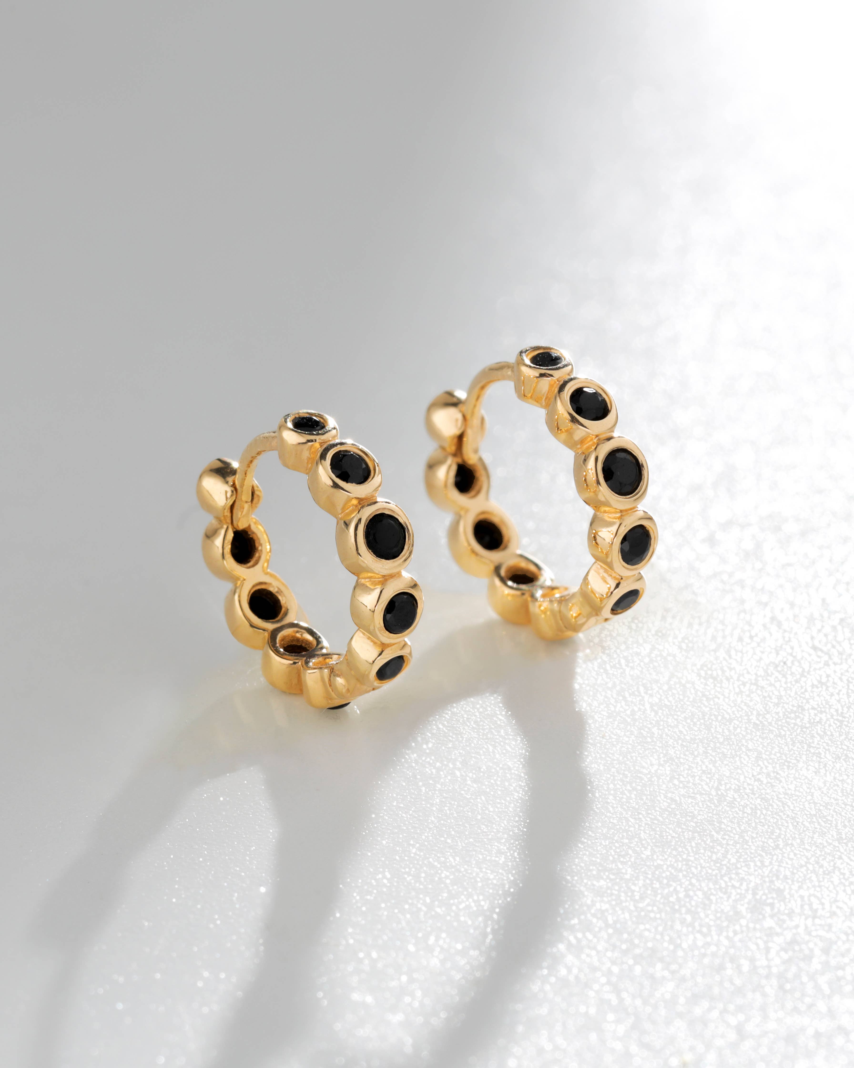 Boucles d'oreilles Open Mini Hoop - CZ noir - Boucles d'oreilles dorées en vente B2B