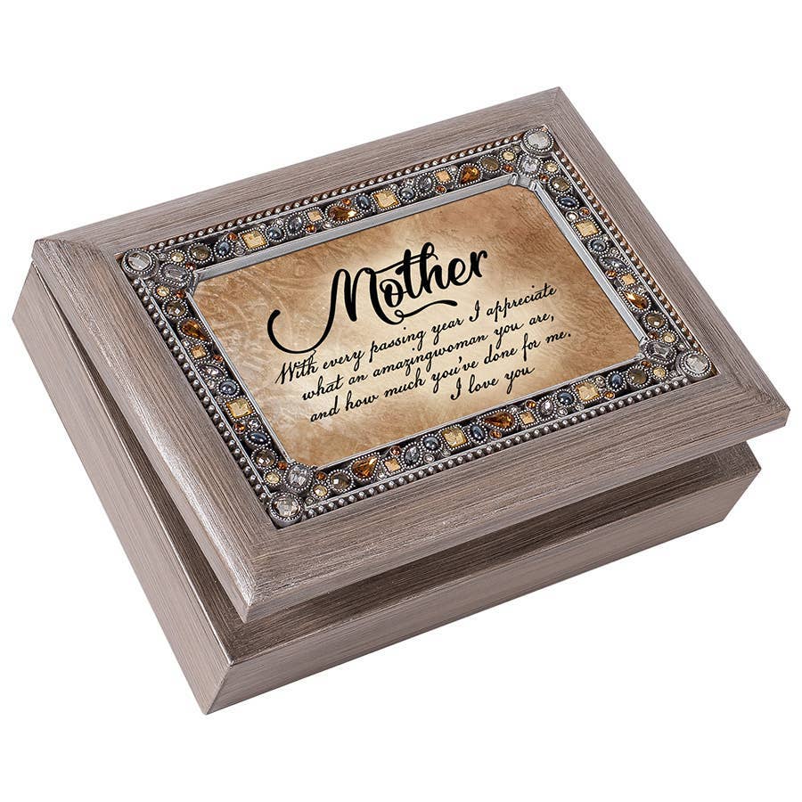 Mom I Love You Every Day - Boîte à bijoux à musique ornée de bijoux en ambre